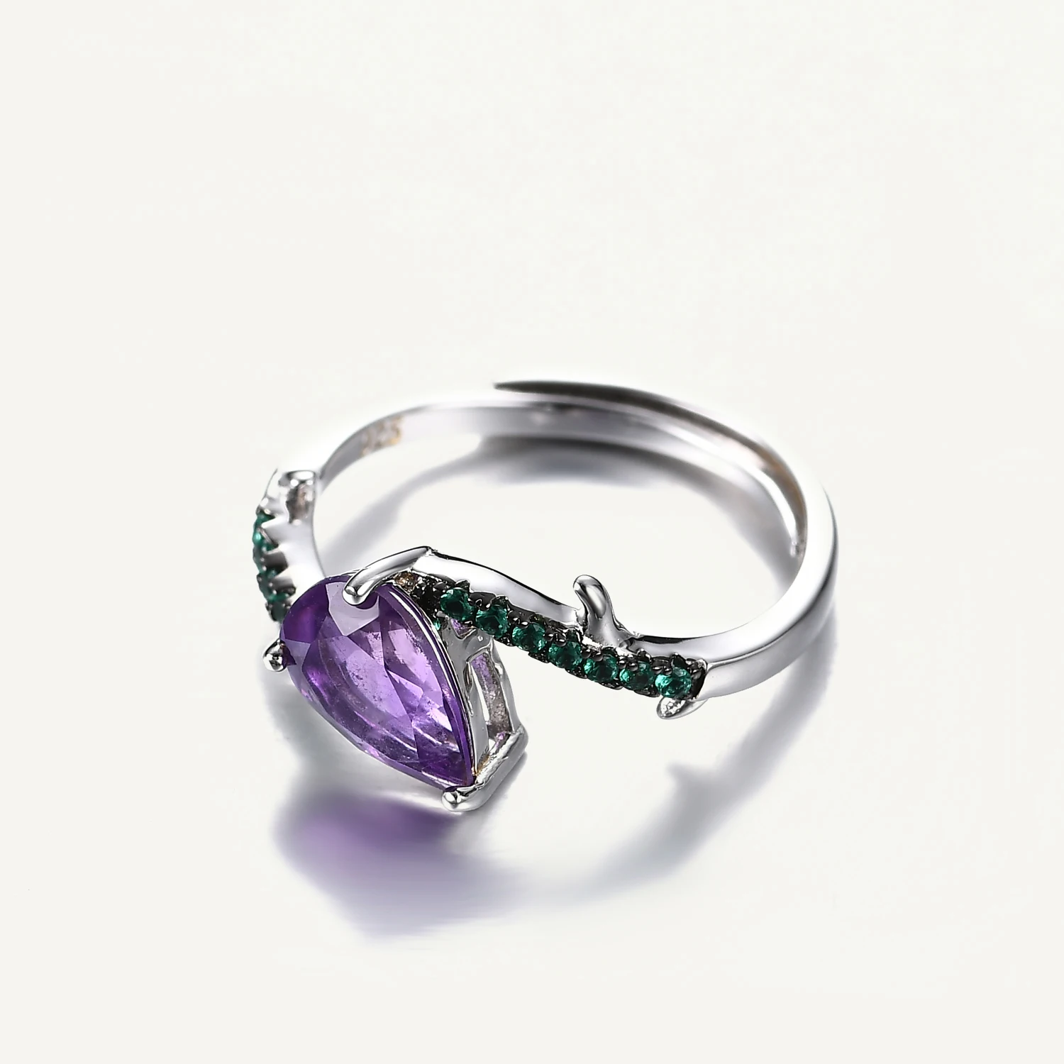 Женское кольцо ручной работы с натуральным аметистом в форме груши