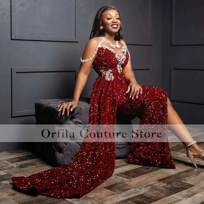 Красное кружевное платье с блестками для выпускного вечера, 2021, арабское официальное неформальное платье-русалка, Платья для вечеринок