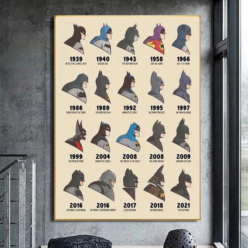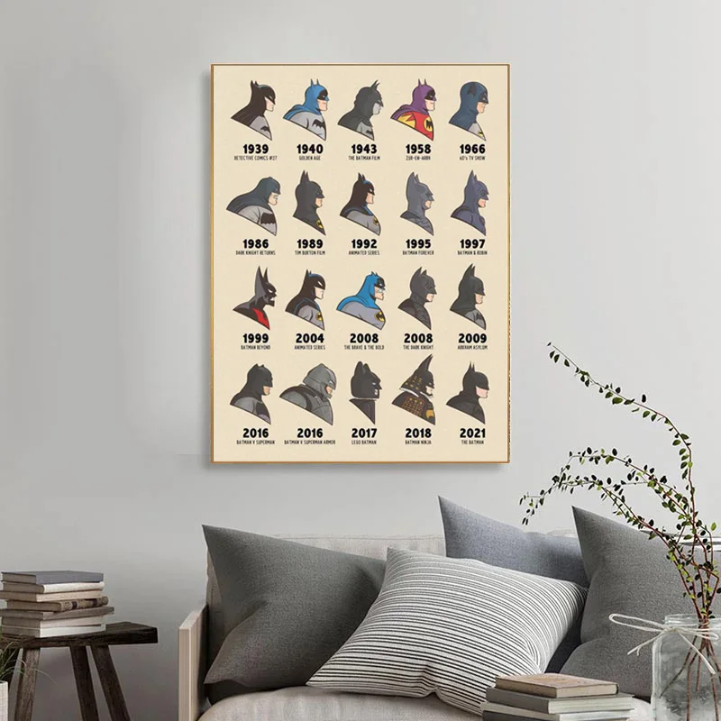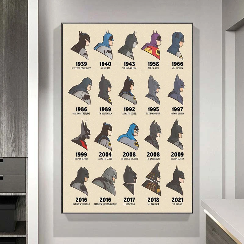 Иллюстрация Marvel, Бэтмен через века, художественный холст, Постер и печать, Бэтмен, Настенная картина для декора гостиной