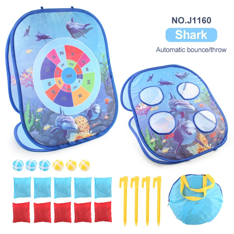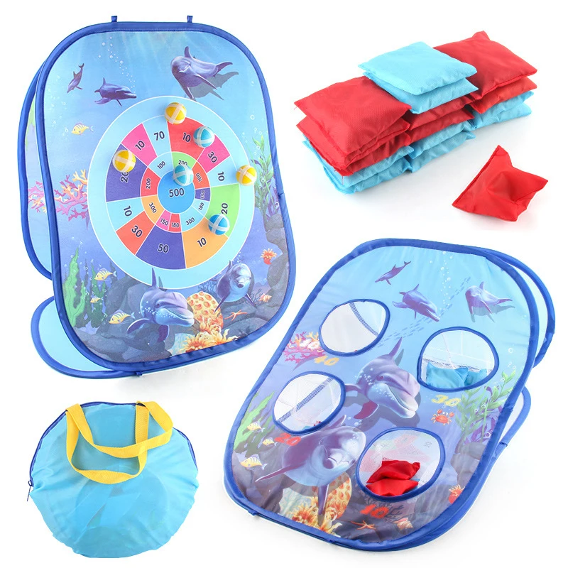 1 Набор игрушек-мешков с песком (8 мешков для бобов, 4 гвоздя, 1 перфорированная тарелка для кукурузы, 1 сумка для переноски, 1 описание)