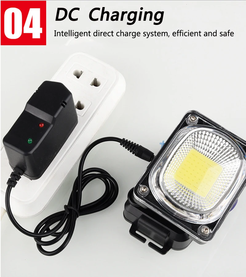 Светодиодный головной фонарь с COB матрицей, водонепроницаемый головсветильник фонарь с зарядкой от постоянного тока, мощный Головной фонарь на аккумуляторах 18650 для кемпинга