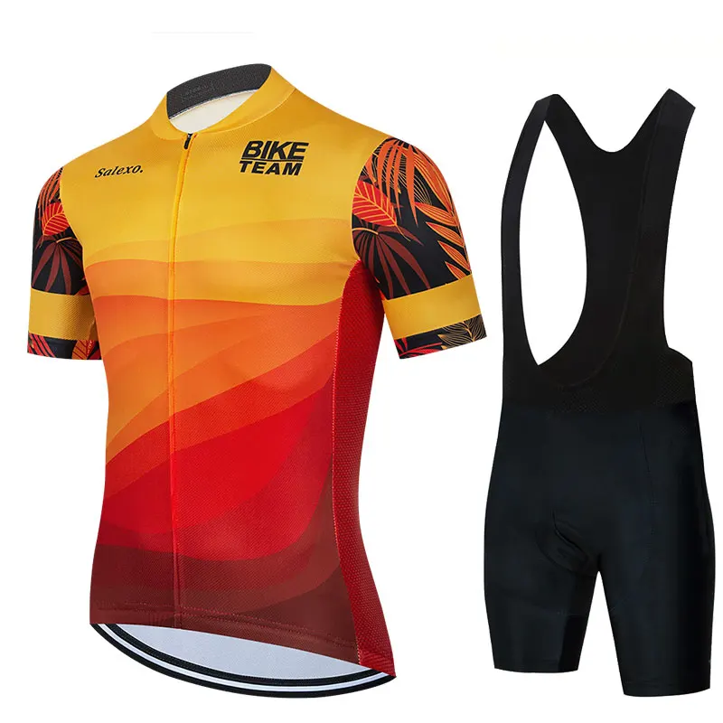 Комплект велосипедной одежды 2021, командная одежда для велоспорта, летний велосипедный костюм с коротким рукавом, мужской комплект из топа и шорт с нагрудником