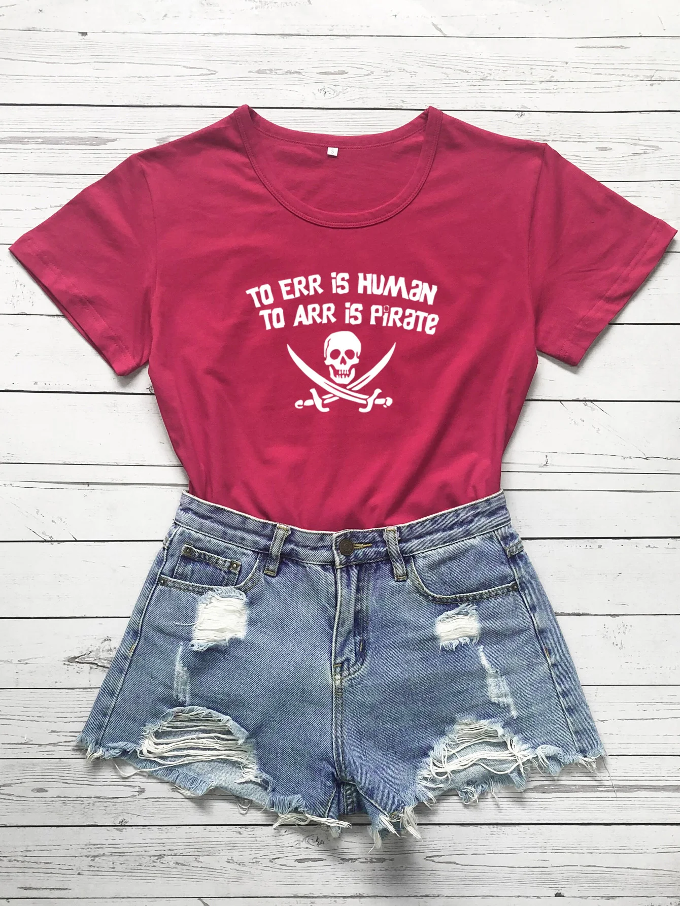 Женская футболка с принтом в виде пиратского черепа из 100% хлопка