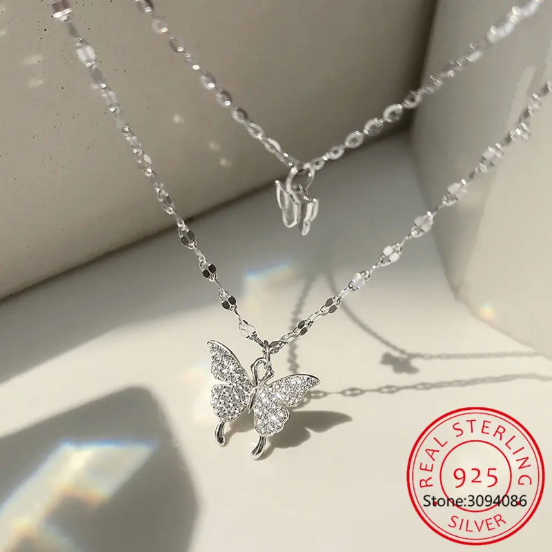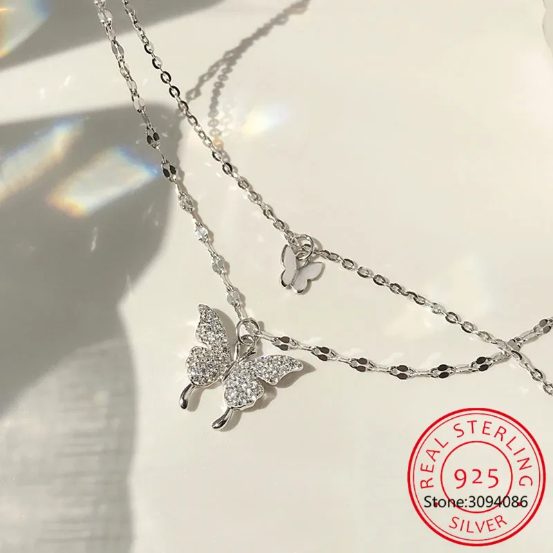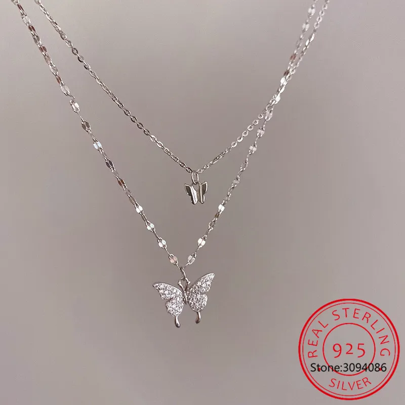 Женское Двухслойное ожерелье-бабочка из стерлингового серебра 925 п...