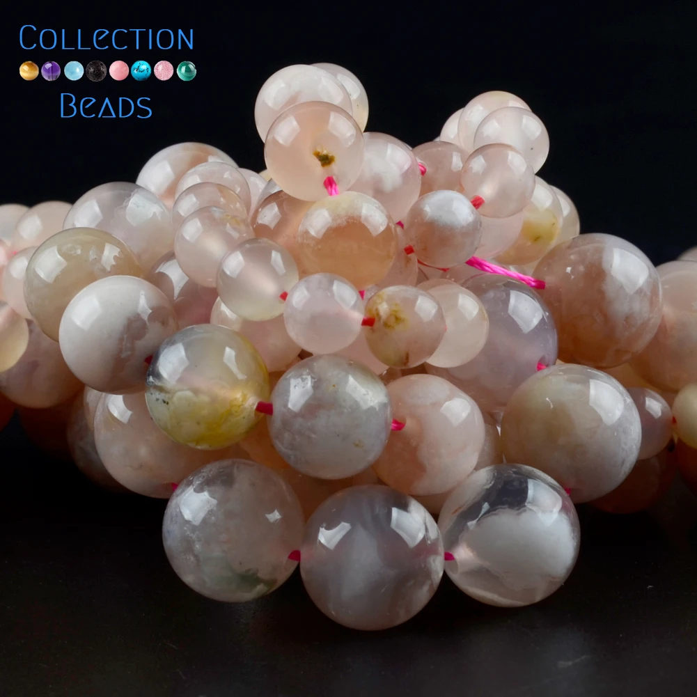 6/8/10/12 мм бусы из натурального камня и розовыми вишнями Агаты круглый разделительные бусины для самостоятельного изготовления ювелирных изделий браслет аксессуары 15''