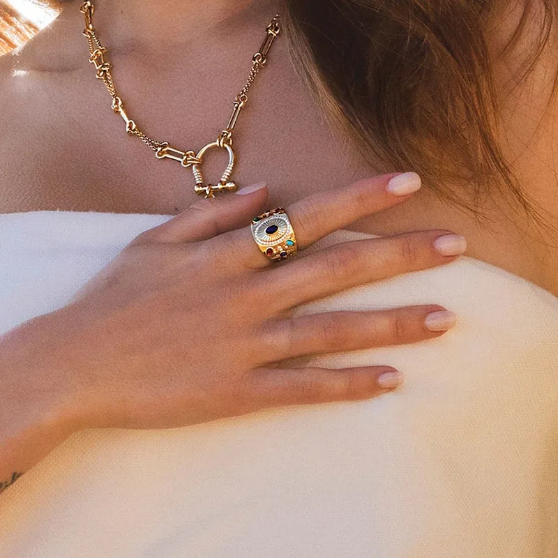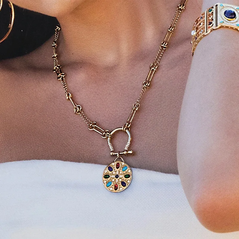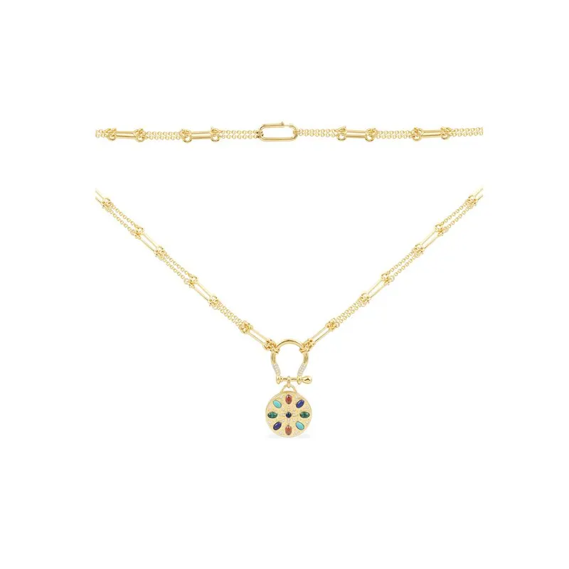 Ожерелье многослойное золотистое с подвеской в виде месяца, карты мира