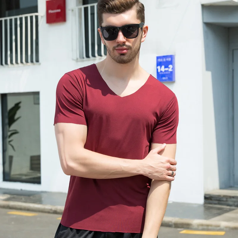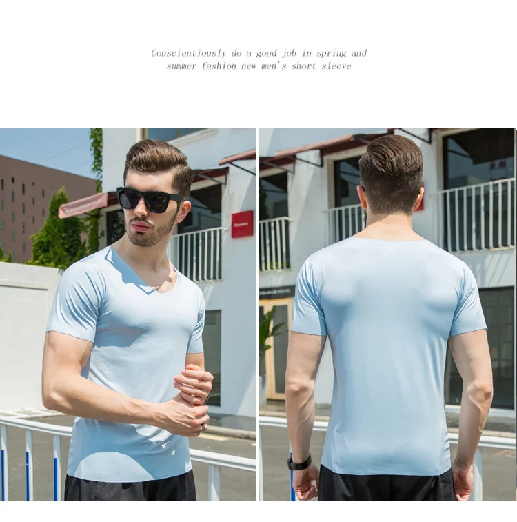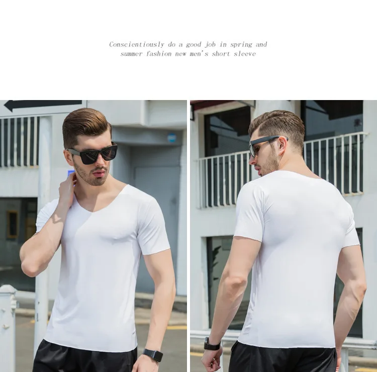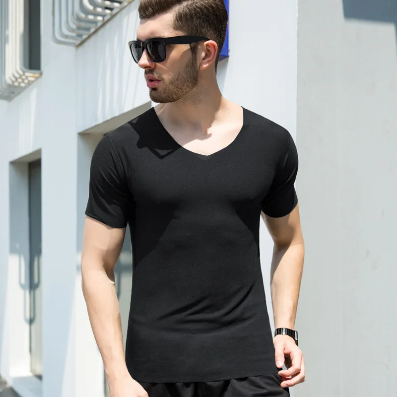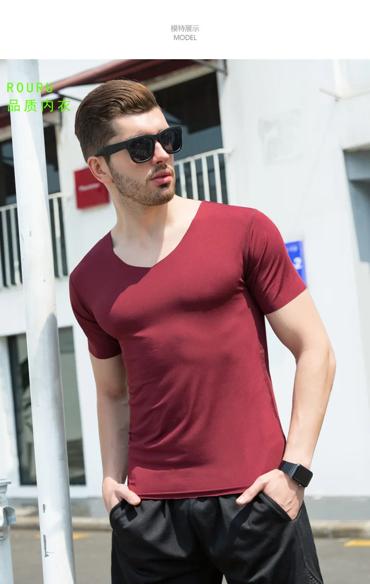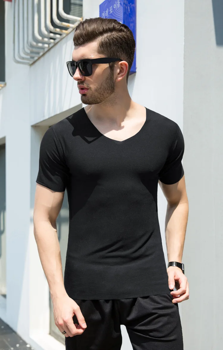 Мужское бесшовное быстросохнущее нижнее белье из вискозы с короткими рукавами и V-образным вырезом
