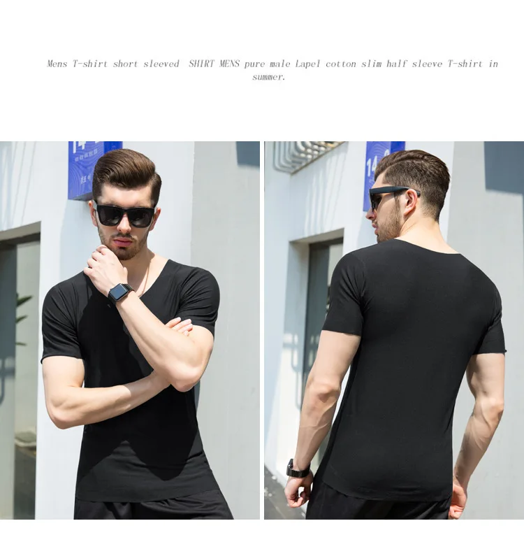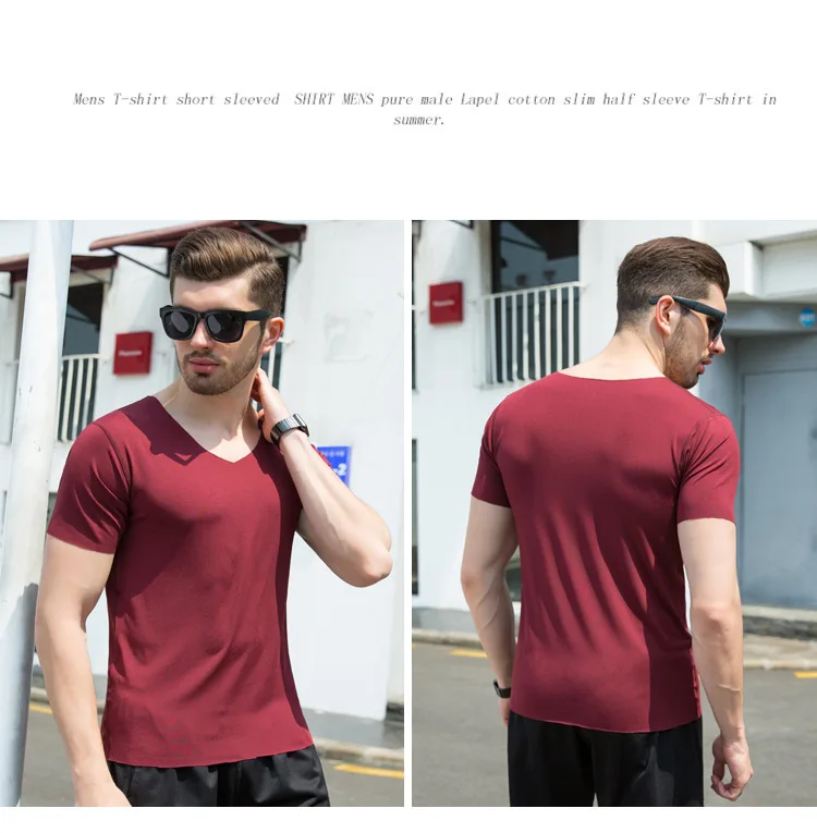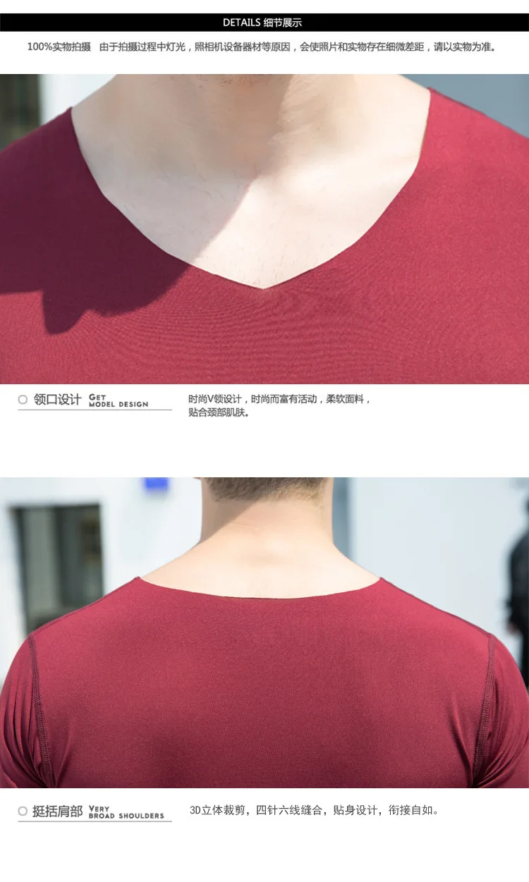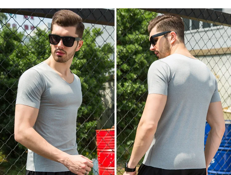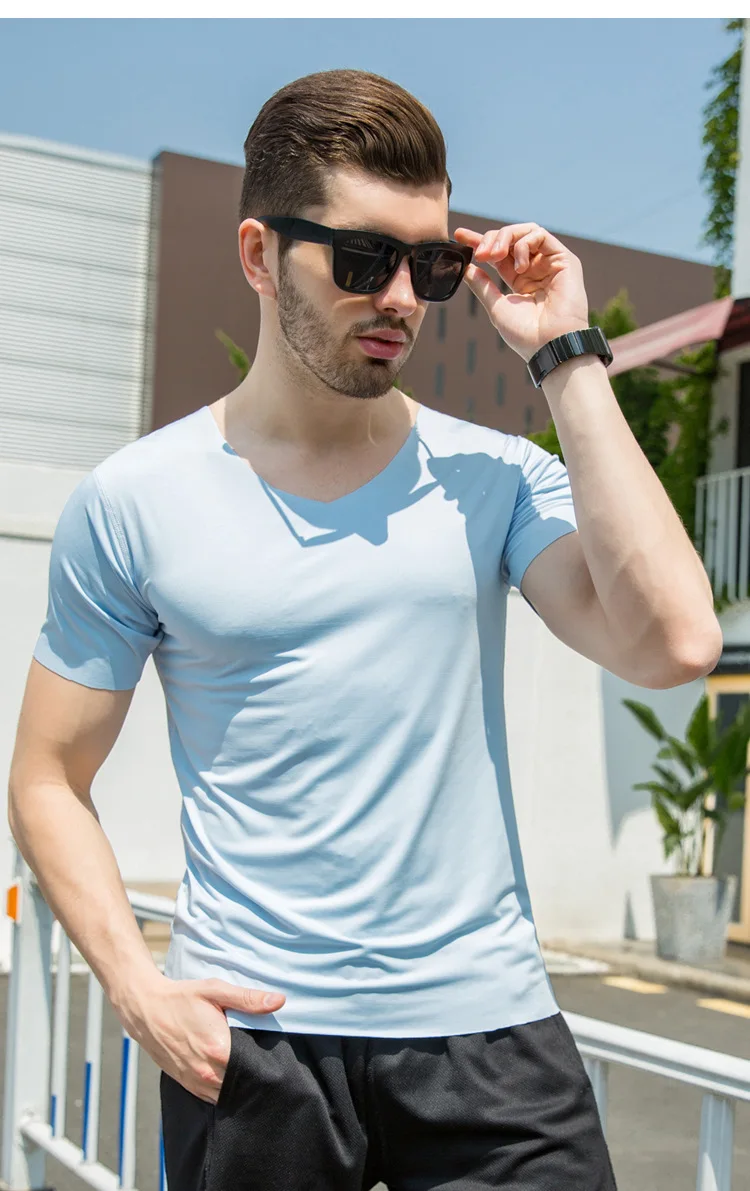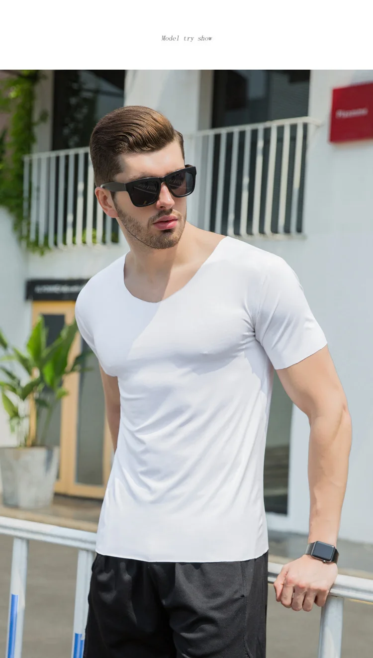 Мужское бесшовное быстросохнущее нижнее белье из вискозы с короткими рукавами и V-образным вырезом