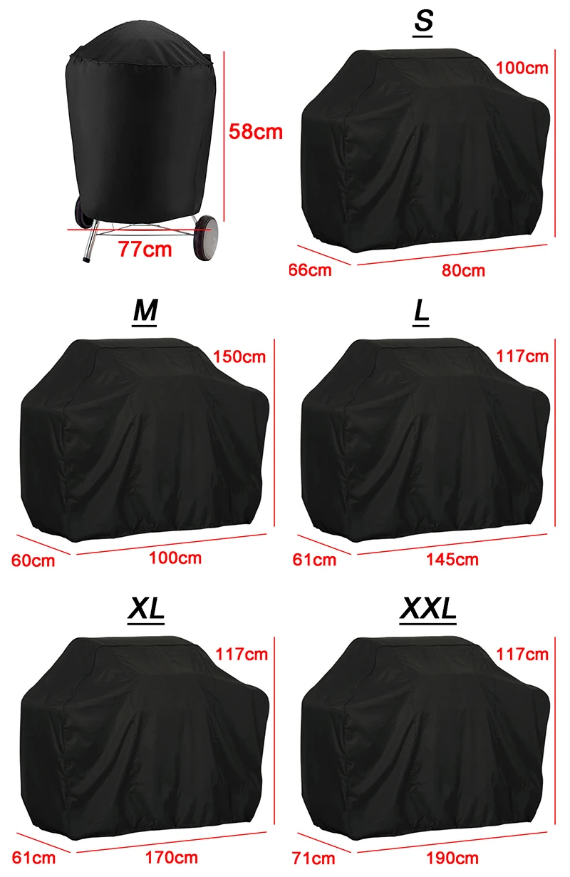 Материал: 210D полиэфирная ткань Оксфорд с серебряным покрытиемКоличество: 1 * крышкаРасширьте размер:Круглая: высота 77 * диаметр 58 см;S: 100*80*66 см;M: 150*100*60 см;L: 145*117*61;XL: 170*60*117 см;XXL: 190*71*117 см