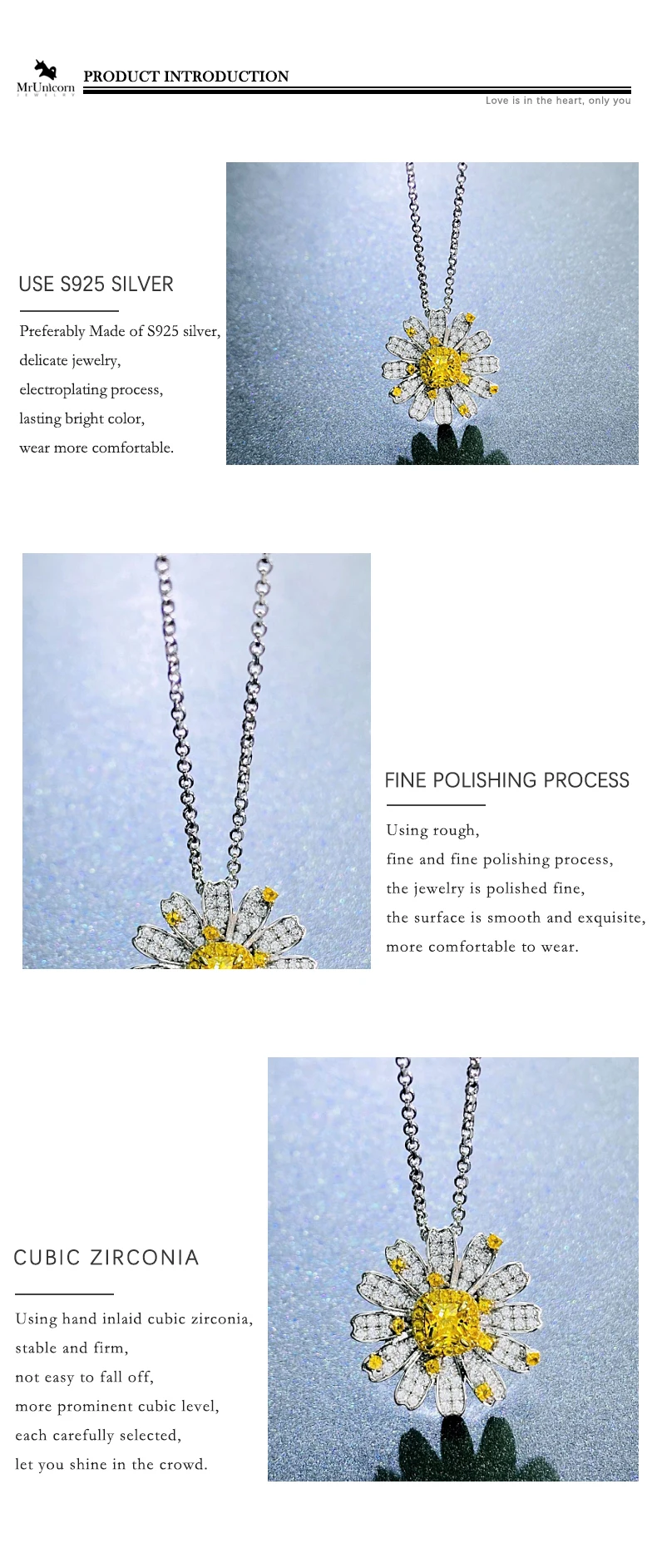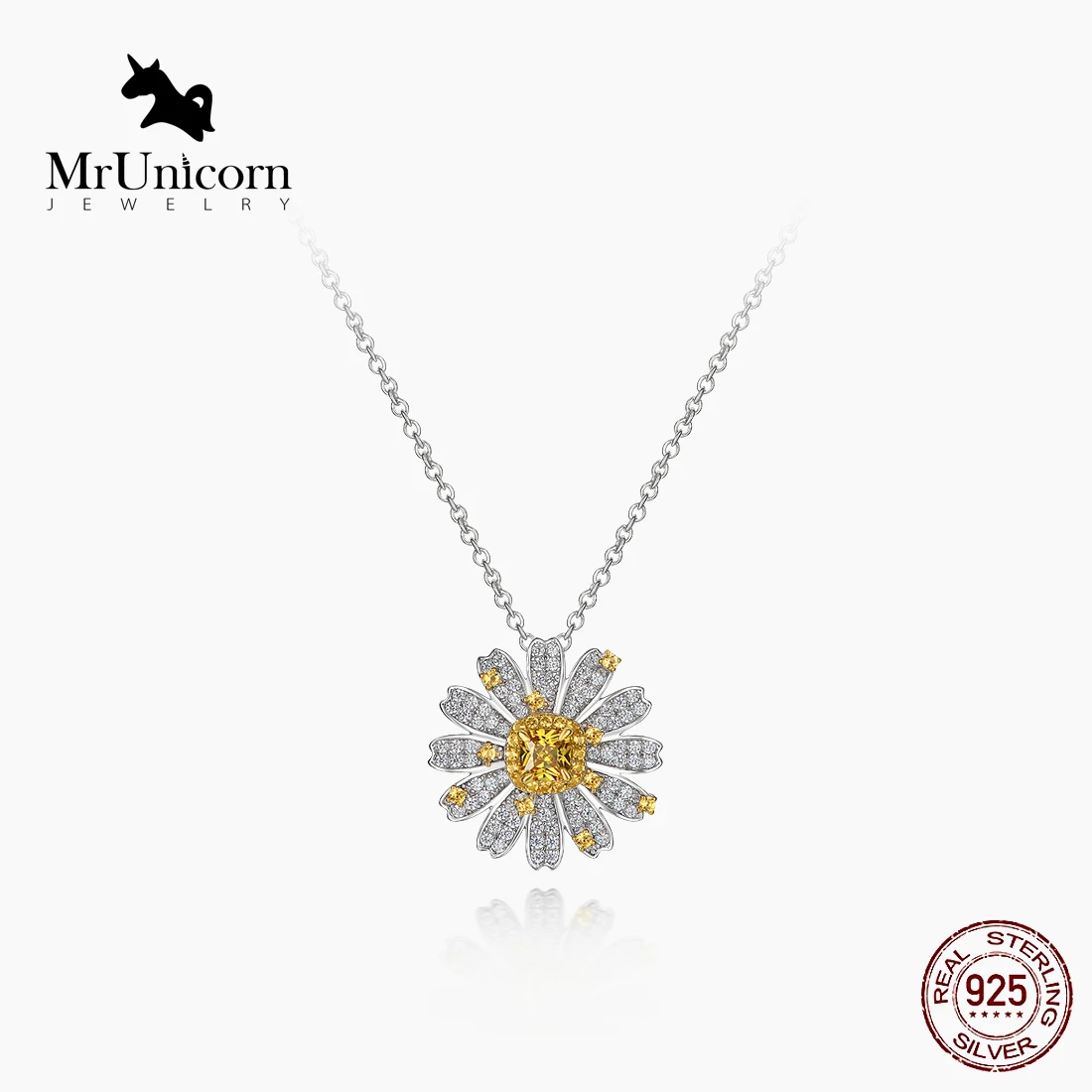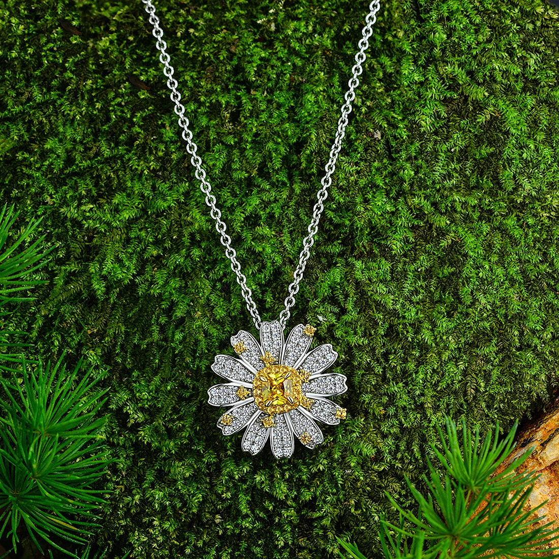 Ожерелье Маргаритка MrUnicorn из серебра S925 пробы, маленькое, чистое и свежее, подарок для подруги, сладкий цветок, цитрин, женский подарок на день рождения