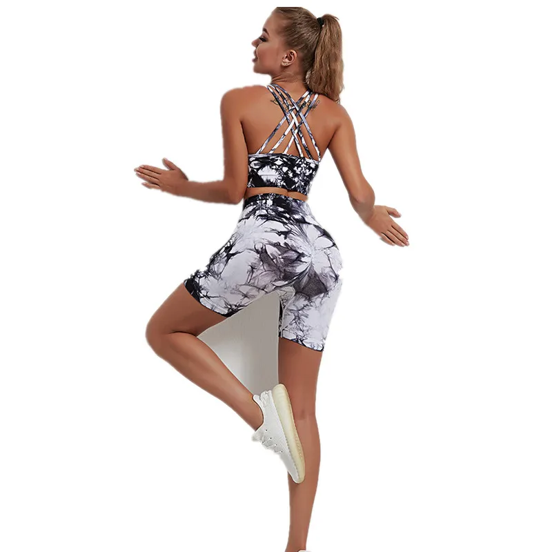Эластичная одежда для йоги Tie-dye для женщин, комплект из 2 предме...