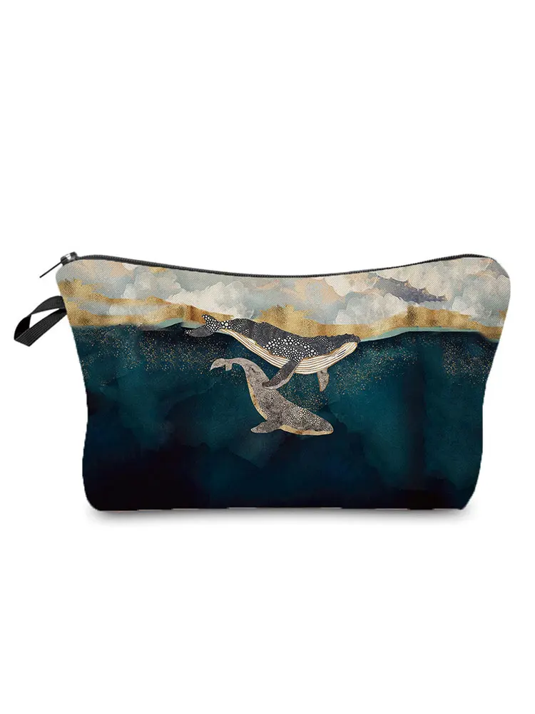 Японская косметичка Ukiyo для женщин, портативная голубая сумочка для хранения косметики с животными, рыбками, китами, дорожный миниатюрный чехол для детских принадлежностей