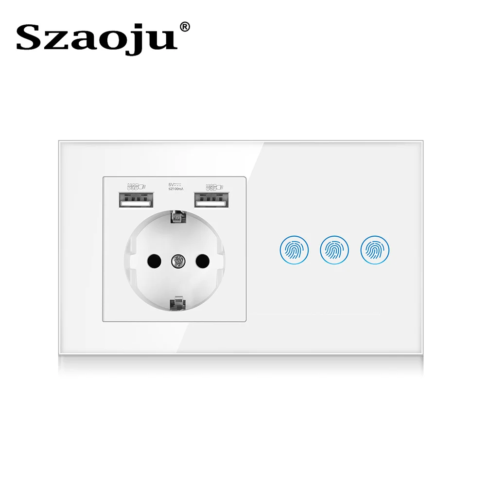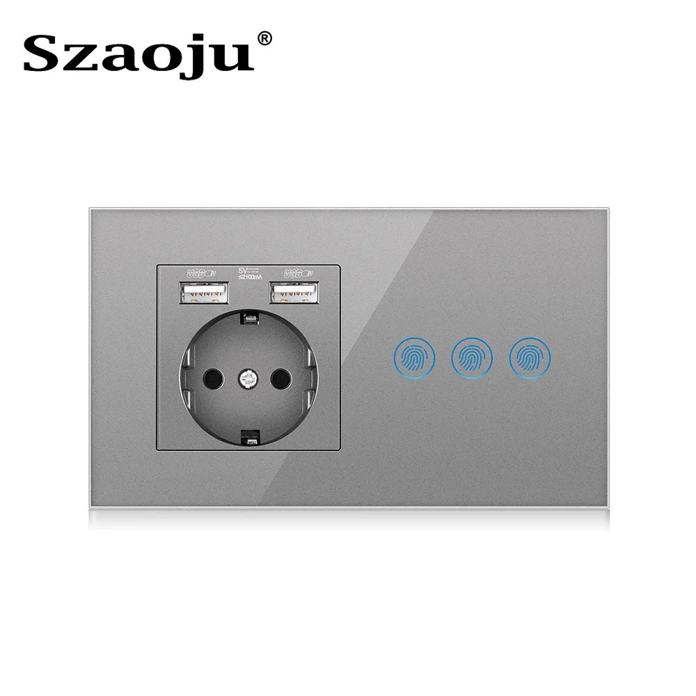 Настенная розетка Szaoju с сенсорным выключателем, 146*86 мм, немецкая стандартная розетка из закаленного стекла со стеклянной панелью и USB-зарядкой