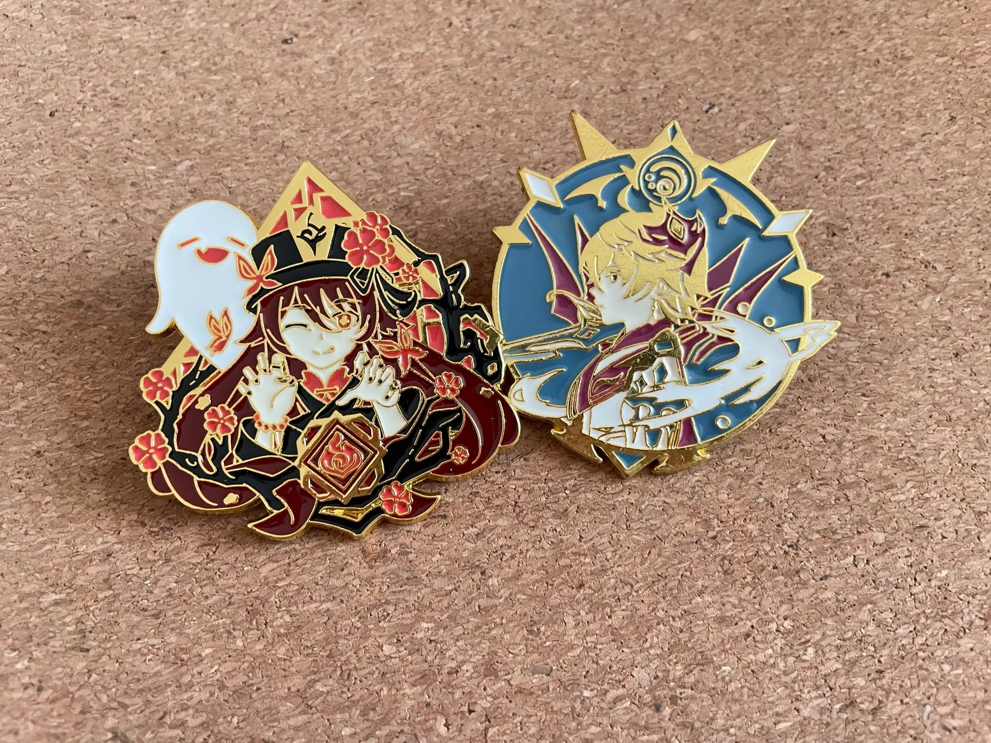 Брошь Genshin Impact Hu Tao, эмалированная брошь в виде Красной лилии, для фанатов видеоигр