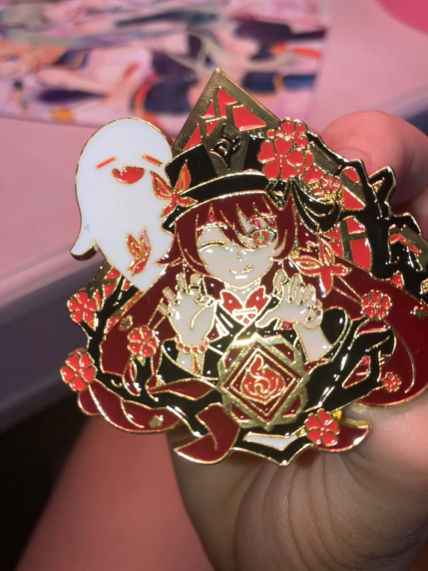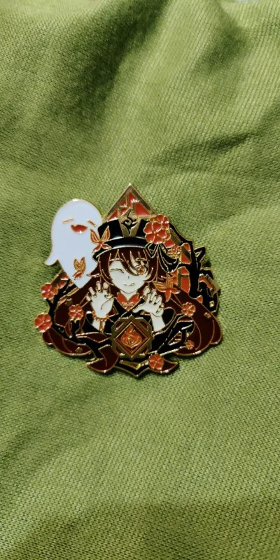 Все как в описании! На значке две застёжки , не страшно потерять. Ху Тао лучшая!!!
