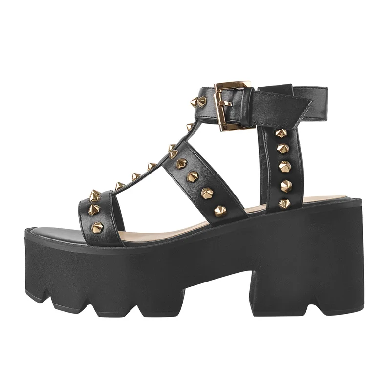 Женские босоножки Onlymaker, из мягкой искусственной кожи, на платформе, с металлическими заклепками, матовые, черные, большие размеры, лето 2021