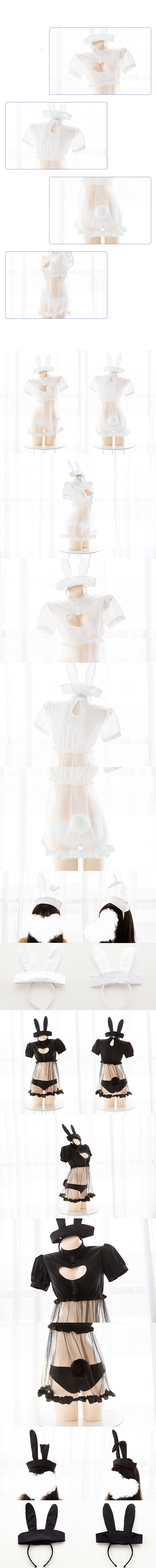 Сексуальное нижнее белье, в форме сердца, с вырезами, кролик, девочка, косплей, медсестра, комплект униформы с милым хвостом