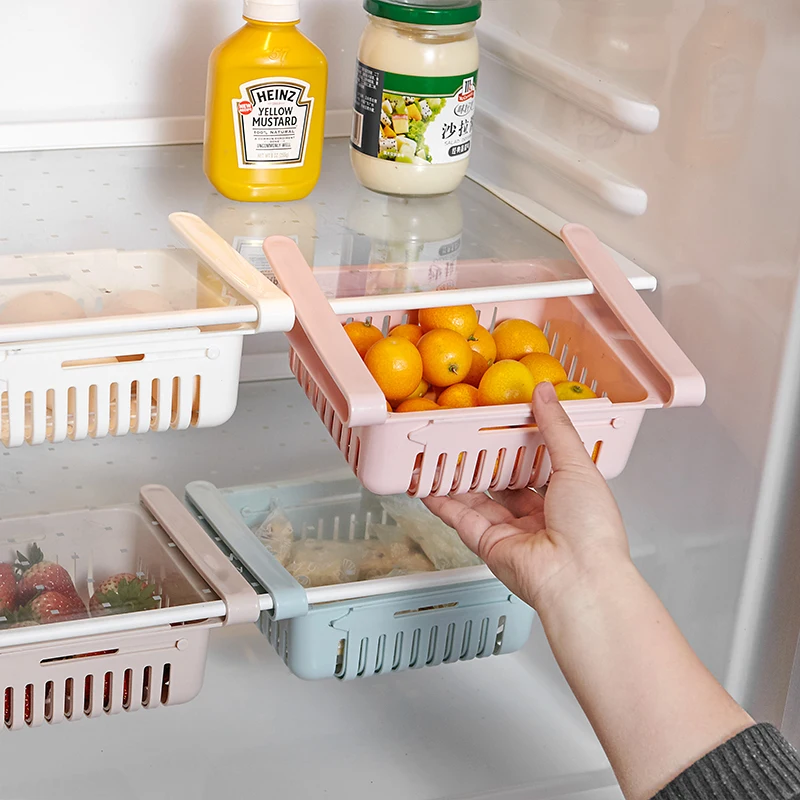 Ящик для холодильника, корзина, органайзер, выдвижная коробка для хранения в холодильнике, держатель полки, растягивающаяся полка, разделитель для свежести, многоярусная стойка для хранения