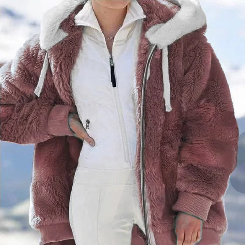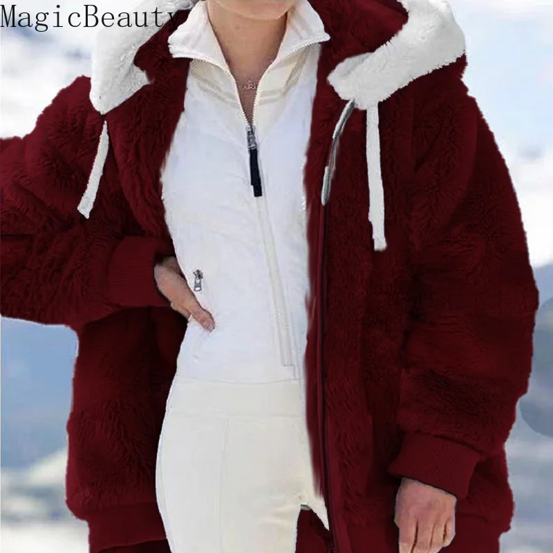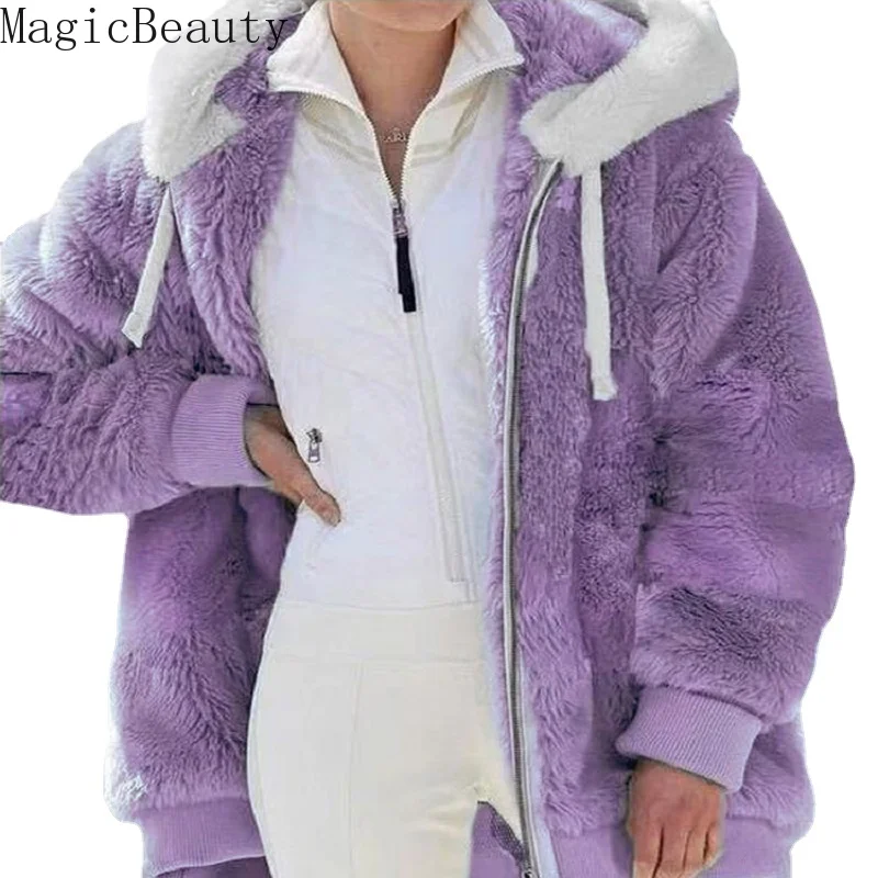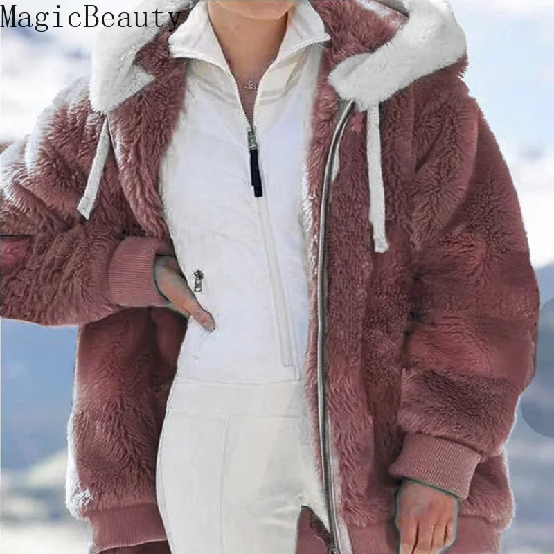 Женское зимнее пальто, однотонная плюшевая теплая куртка с капюшоно...