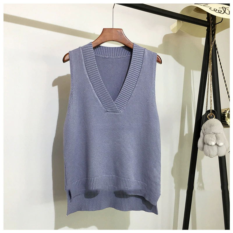 Зимний вязаный жилет с V-образным вырезом, женский свитер, Осенний Асимметричный свободный дикий свитер, жилет, свитер без рукавов, Повседневные вязаные пуловеры
