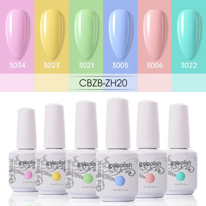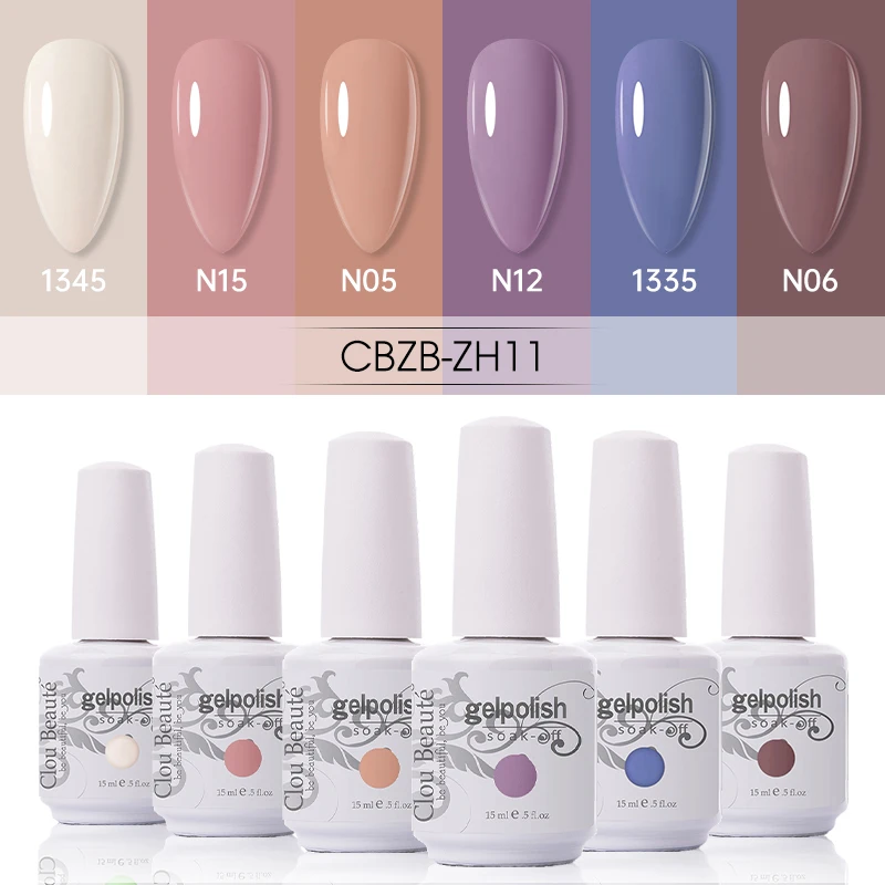 Clou Beaute 6 шт. Гель-лак для ногтей Набор 15 мл блеск Vernis Полупостоянный УФ гель блеск Гибридный лак для ногтей маникюрный набор