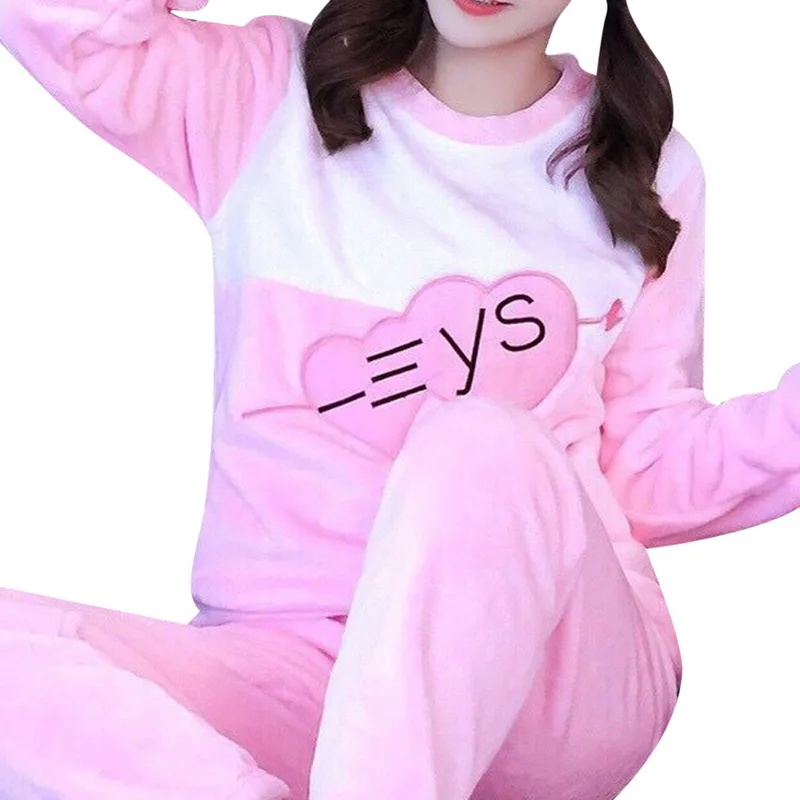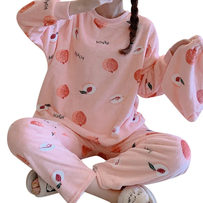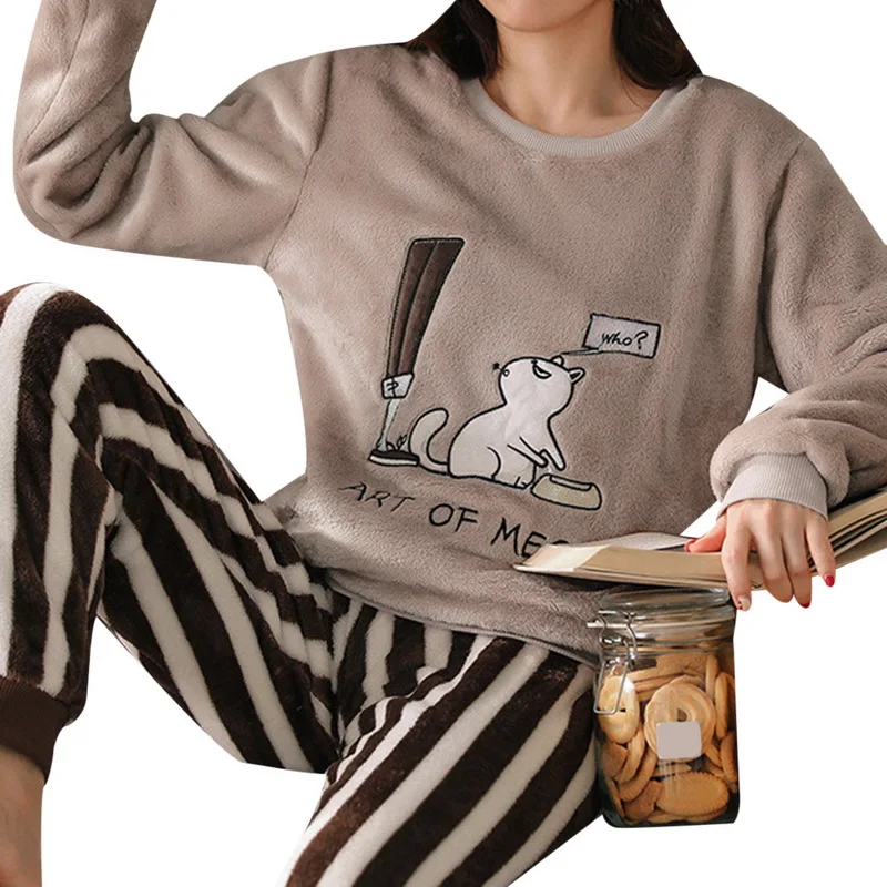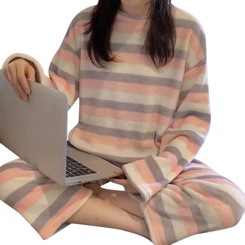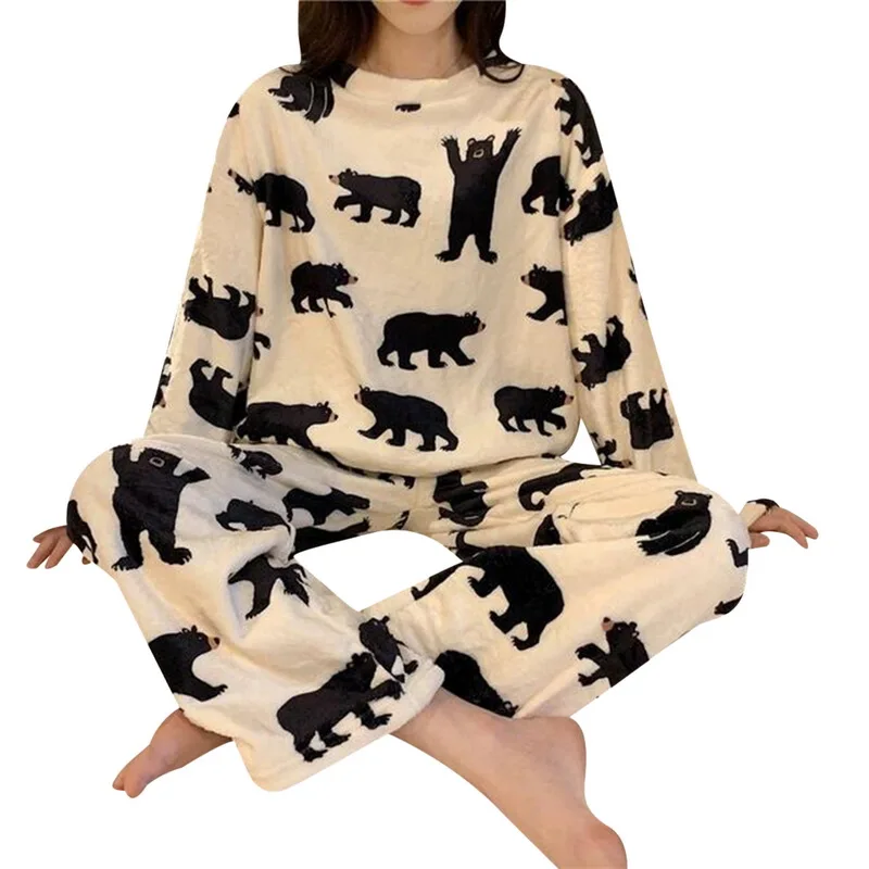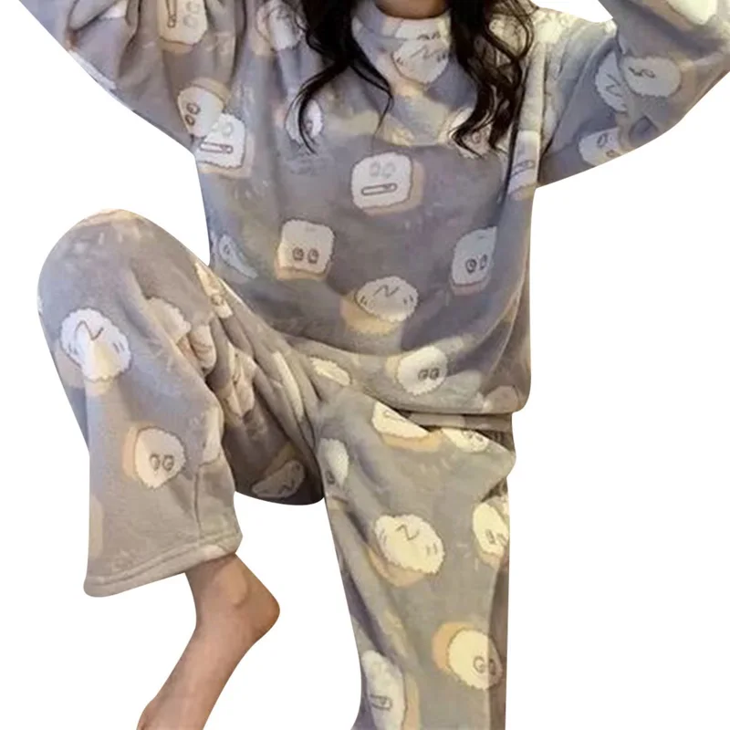 Осень-зима 2021, фланелевый плотный пижамный комплект из 2 предметов, повседневный свободный костюм с круглым вырезом, теплая удобная одежда для сна, ночная рубашка, пижамы