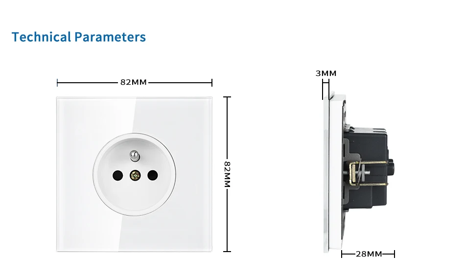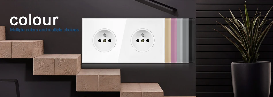 16A 250V французская розетка 82 мм * 82 ммПодходит для европейской коробки3 мм Хрустальное закаленное стеклоСтандартное заземлениеЦвет: черный/белый/Золотой/Серебряный/зеленый/фиолетовый/серый
