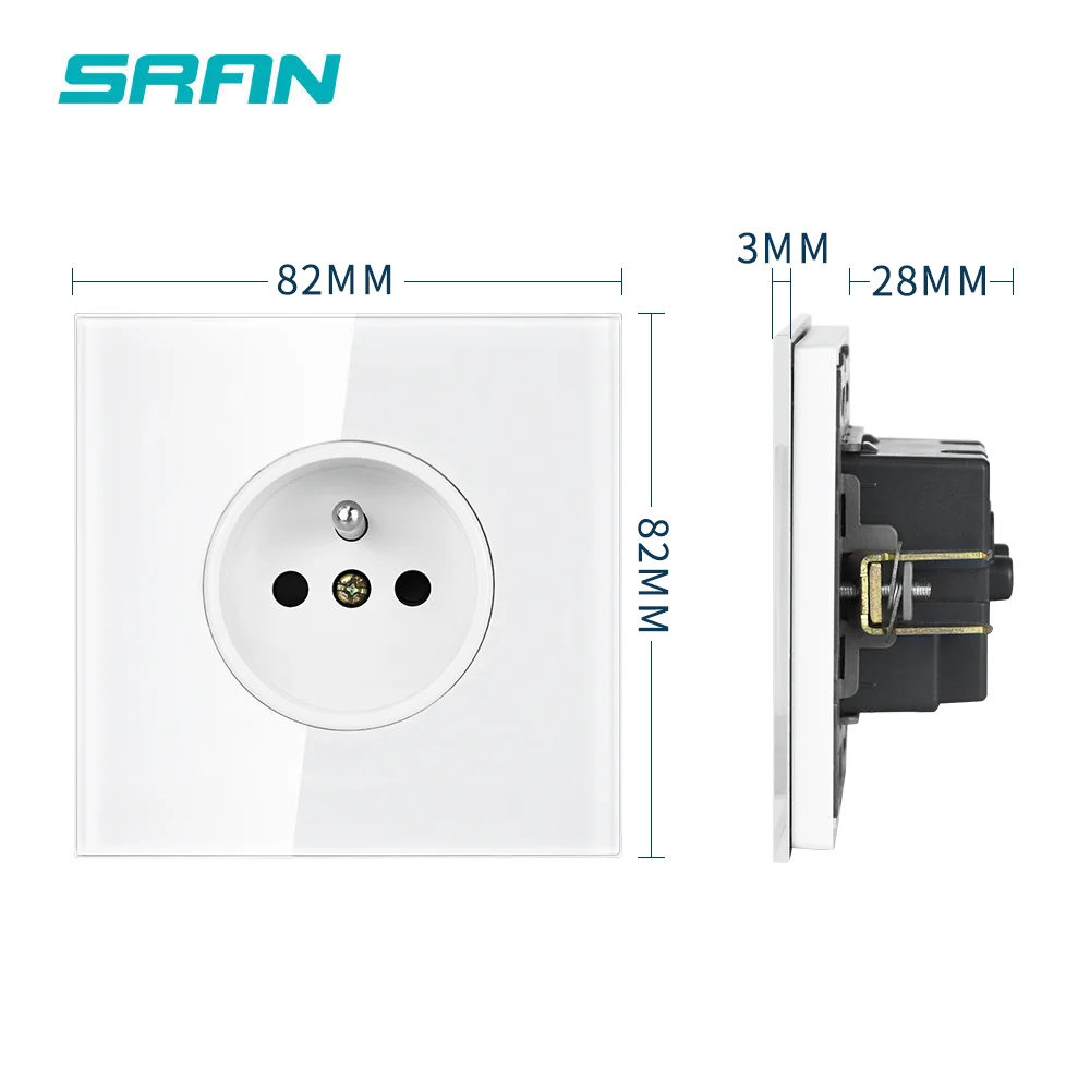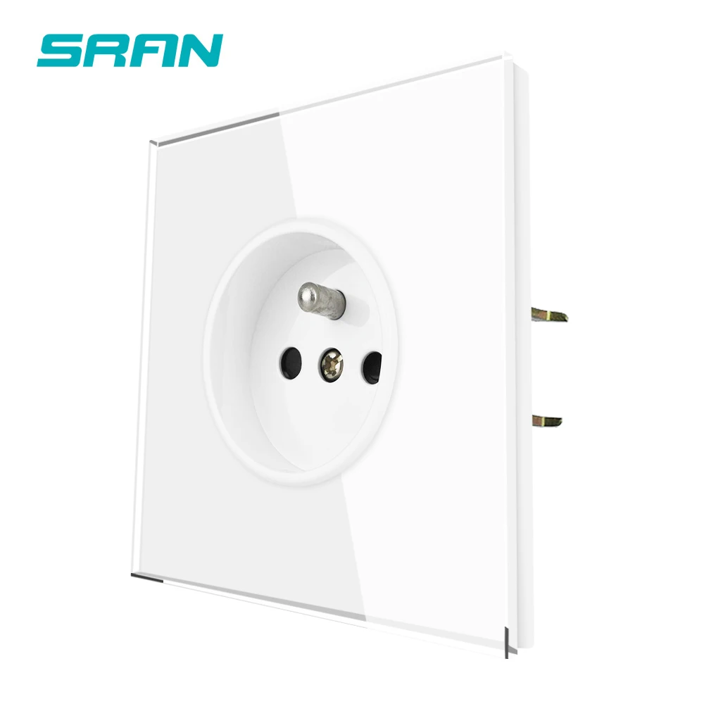 Французская электрическая розетка, 16 а, европейская стандартная электрическая розетка, белая, полностью зеркальная, прозрачная стеклянная панель, настенная розетка, франция SRAN