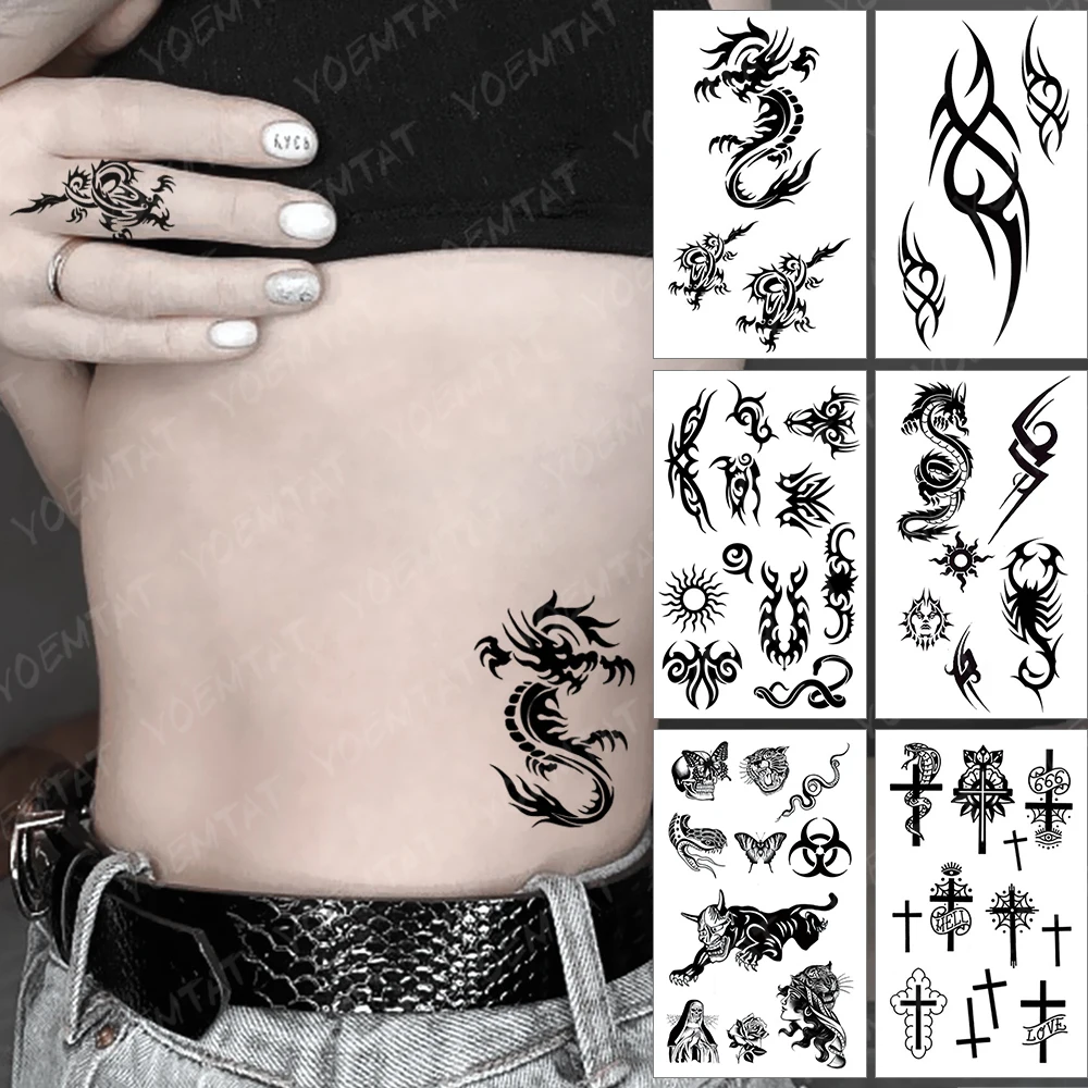 Водостойкая Временная тату-наклейка, дракон, палец, тотем, флэш-тату, маори, племенной рукой, запястье, искусственная тату для боди-арта, для женщин и мужчин