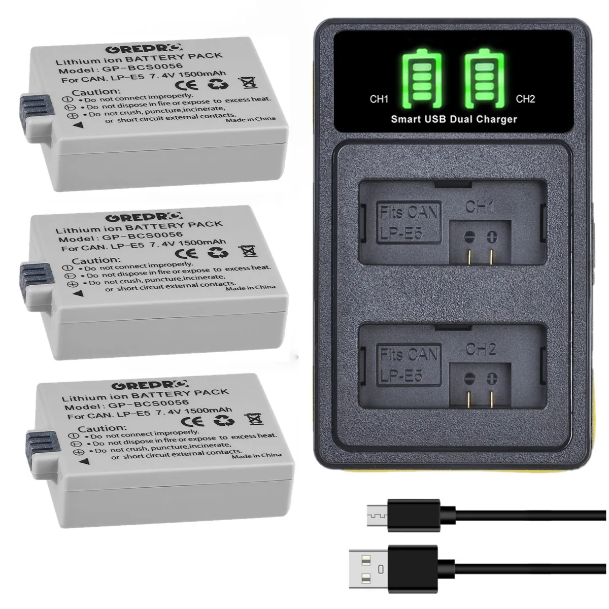 1500 мАч LP-E5 батарея + светодиодный двойной зарядное устройство с портом type-C