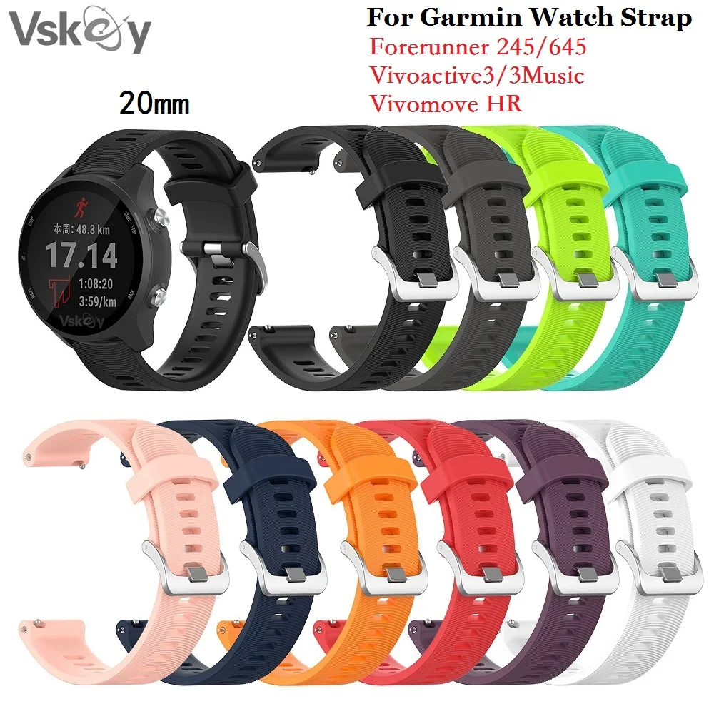 Ремешок силиконовый для смарт-часов Garmin Forerunner 245 645 Vivoactive 3 Vivomove HR, 10 шт., Сменные аксессуары 20 мм