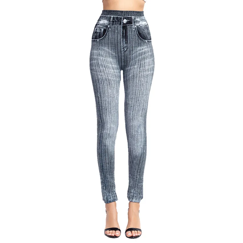 Женские эластичные джинсовые леггинсы с высокой талией, облегающие ...