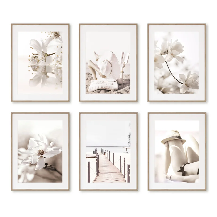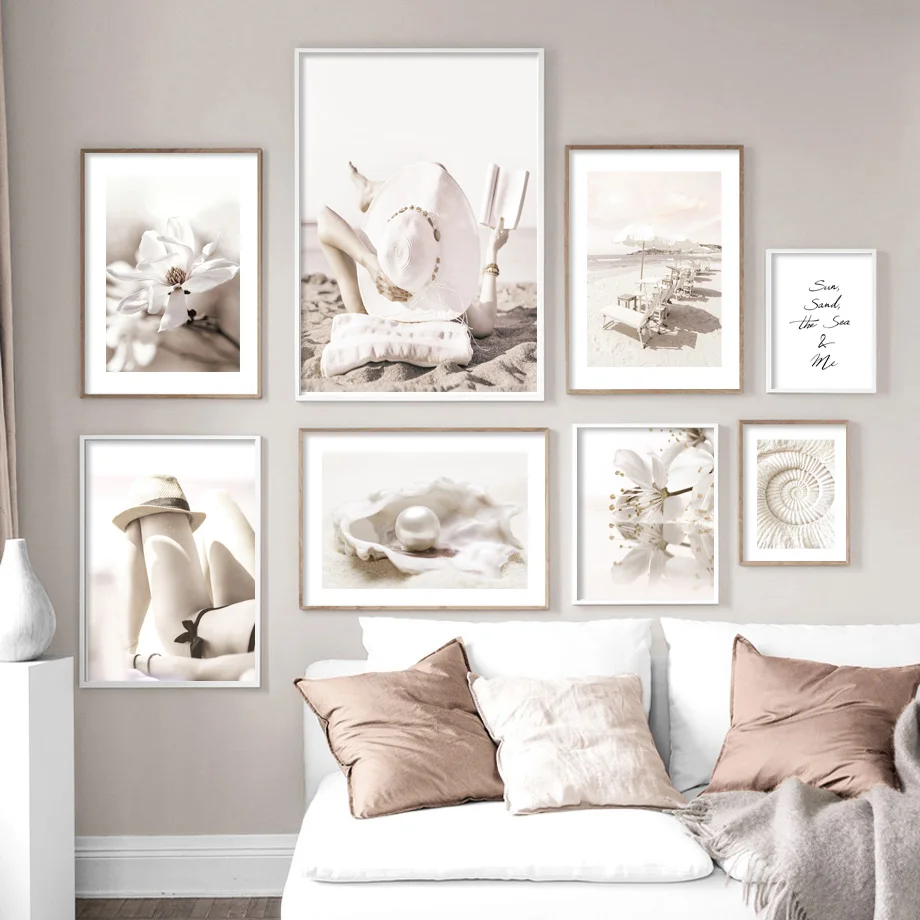 Пляжная раковина бикини девушка цветок скандинавский стиль пейзаж настенная живопись холст постеры и принты картинки для декора гостиной