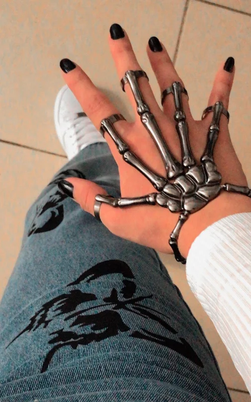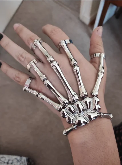 Точки пули:1. Классический Цвет: браслет с черепом и кольцом классического цвета s можно носить как мужчинам, так и женщинам.2. Стиль панк: Этот браслет изготовлен из сплава, нетоксичный и прочный, удобный в носке, в стиле ретро, подходит для большинства людей, чтобы показать свой личный вкус и стиль панк.3. Идеально подходит: браслет разработан в форме черепа, и кольцо идеально подходит между браслетом и пальцами, которые сделают ваши руки выделяться и добавят очарования вашей одежде.4. Широкие случаи: наш браслет с черепом и кольцом используется для большинства случаев, женщины или мужчины могут носить этот браслет, подходит для Хэллоуина, косплея, выступлений на сцене, вечеринок или других фестивалей, как личные украшения, или в качестве шикарного подарка для того, кого вы любите.5. Отличный подарок: это идеальный подарок для влюбленных, подружек, жен, мам, дочерей, друзей и себя на Хэллоуин, вечеринку, День Святого Валентина и другие праздники.Спецификация:Название: браслет со скелетомМоделирование: ручная костьМатериал: высококачественный цинк никелевый сплав без гальванического покрытияВес: около 69 гУпаковка: opp отдельная упаковкаПроцесс обработки: Гальваническое покрытиеПрименимые случаи: Хэллоуин, ролевые игры, сценаЦвет: черный, золотой, серебряныйПопулярные элементы: черепРазмер: как показаноРазмер показан на картинкеУпаковочный лист:Браслет * 1Примечания:Из-за световых эффектов и углов съемки, в продукте есть разница в цвете, пожалуйста, поймите.