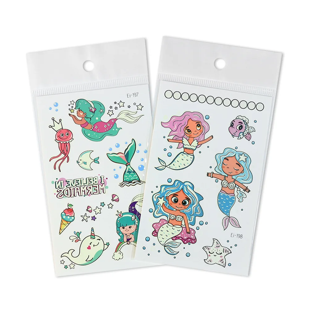 Светящаяся Русалка, яркие Мультяшные Веселые наклейки, временная татуировка на лицо, руки, ножки для ребенка, украшение для боди-арта