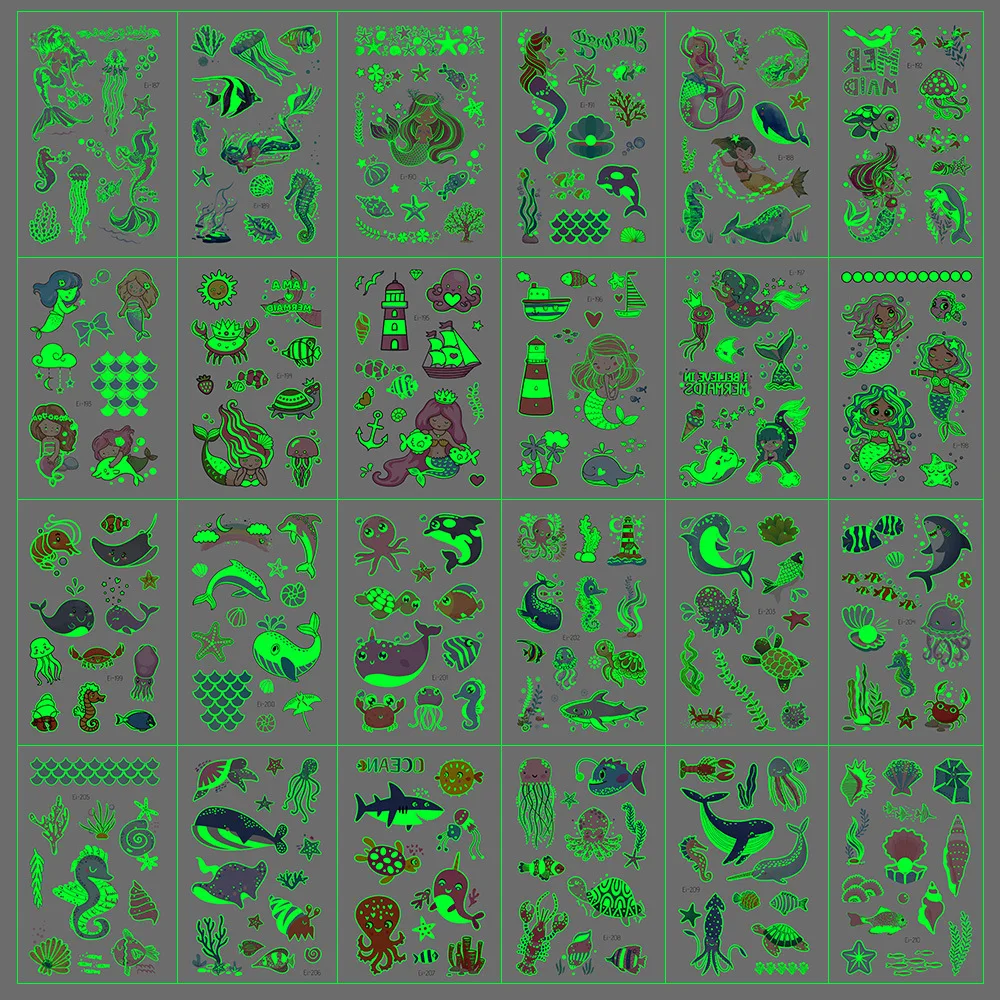 5pcslot Luminous Tattoo Face Temporary Color Unicorn Mermaid Dinosa...