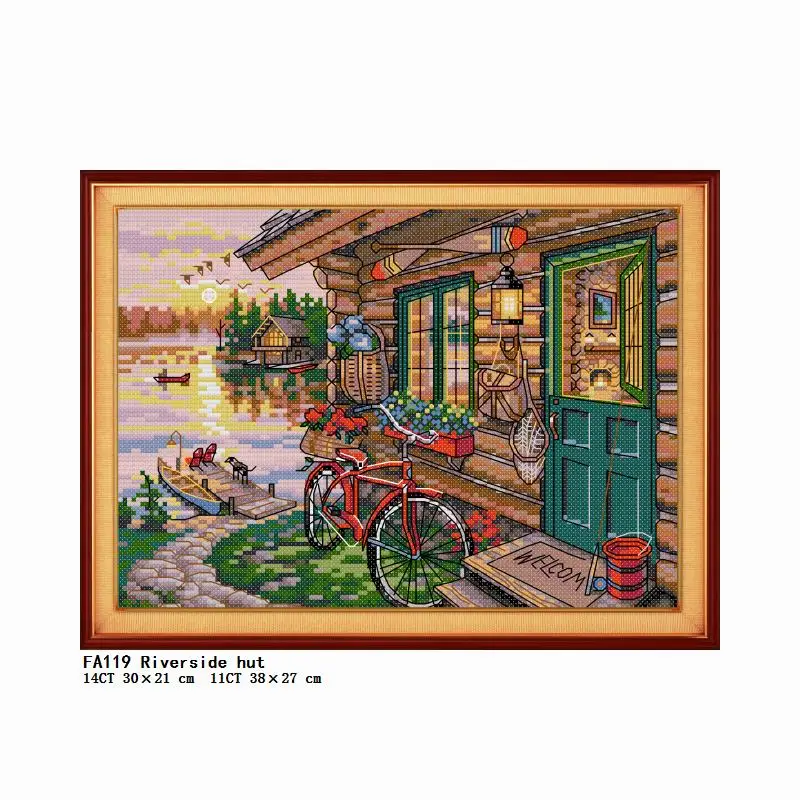 Набор для вышивки крестиком в виде реки хижин, набор для украшения дома, Набор для вышивки 11CT 14CT, холст с принтомУ нас есть 14CT и 11CT.