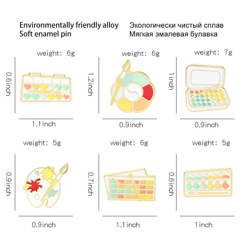 Эмалированные булавки в палитре с рисунком, кисточка, булавки для в...