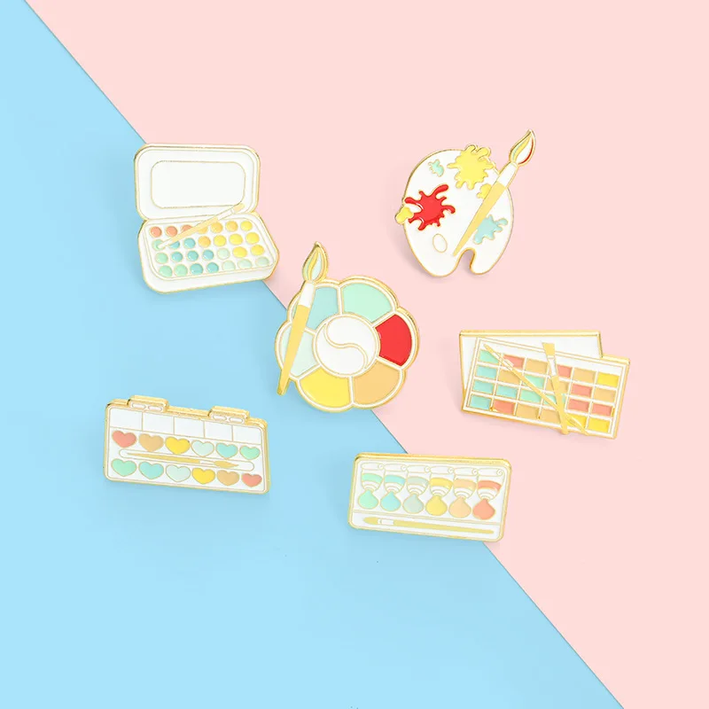 Креативная мультяшная цветная эмалированная брошь для рисования с кисточкой для художественного рисования, значок из сплава с любовными тенями для век для макияжа, значок, женская бижутерия, подарок