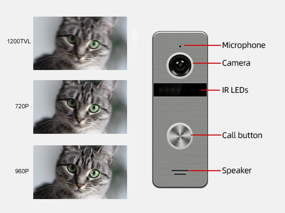 ♦Камера 960P HD♦3 шт. 940 нанометровые ИК-светодиоды для ночного видения♦Регулируемый громкость внутренней связи♦Двусторонний Интерком♦ИК-датчик, Автоматическое включение/выключение ИК-светодиодов♦Простая установка и установка DIY♦Антиантивандальная панель из алюминиевого сплава♦IP65 к атмосферным воздействиям