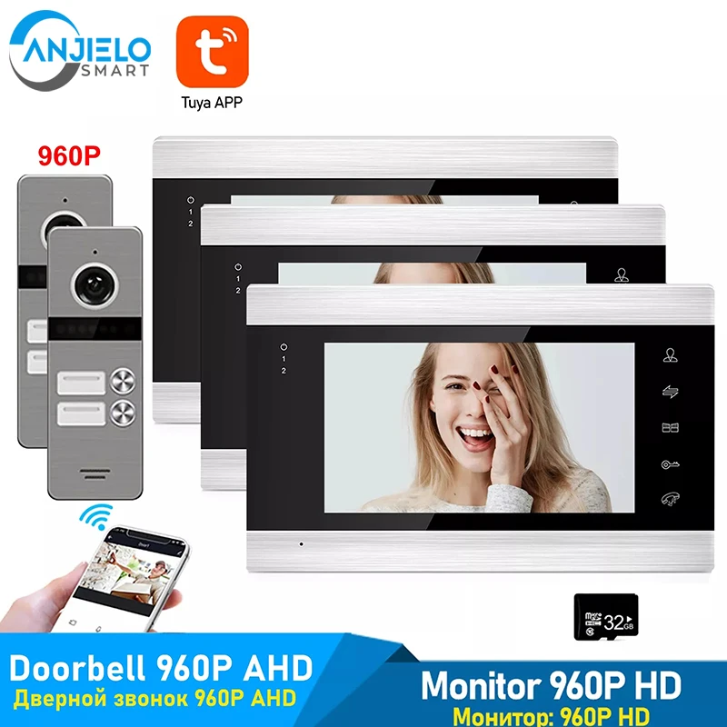 Умное приложение Tuya, телефон с дистанционным управлением, экран 7 дюймов, разрешение 960P, Wi-Fi, проводная система внутренней связи для многоквартирной системы безопасности