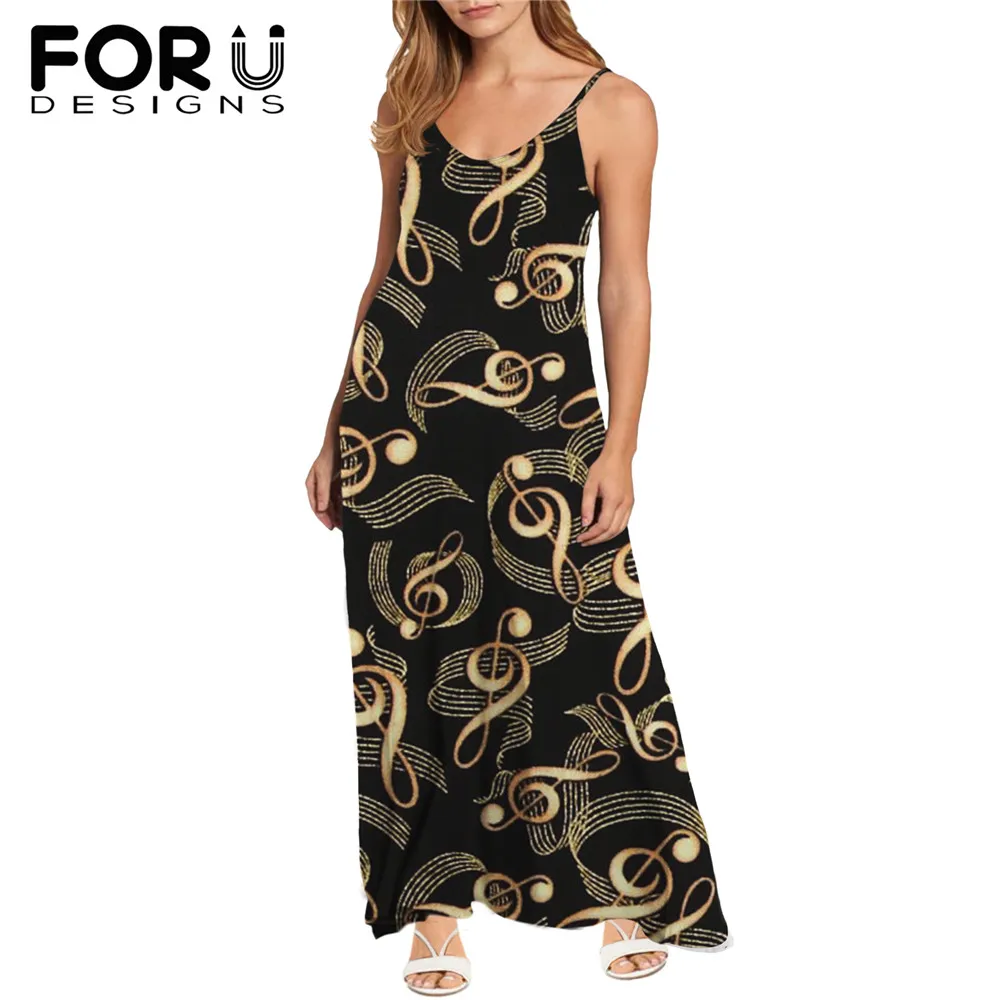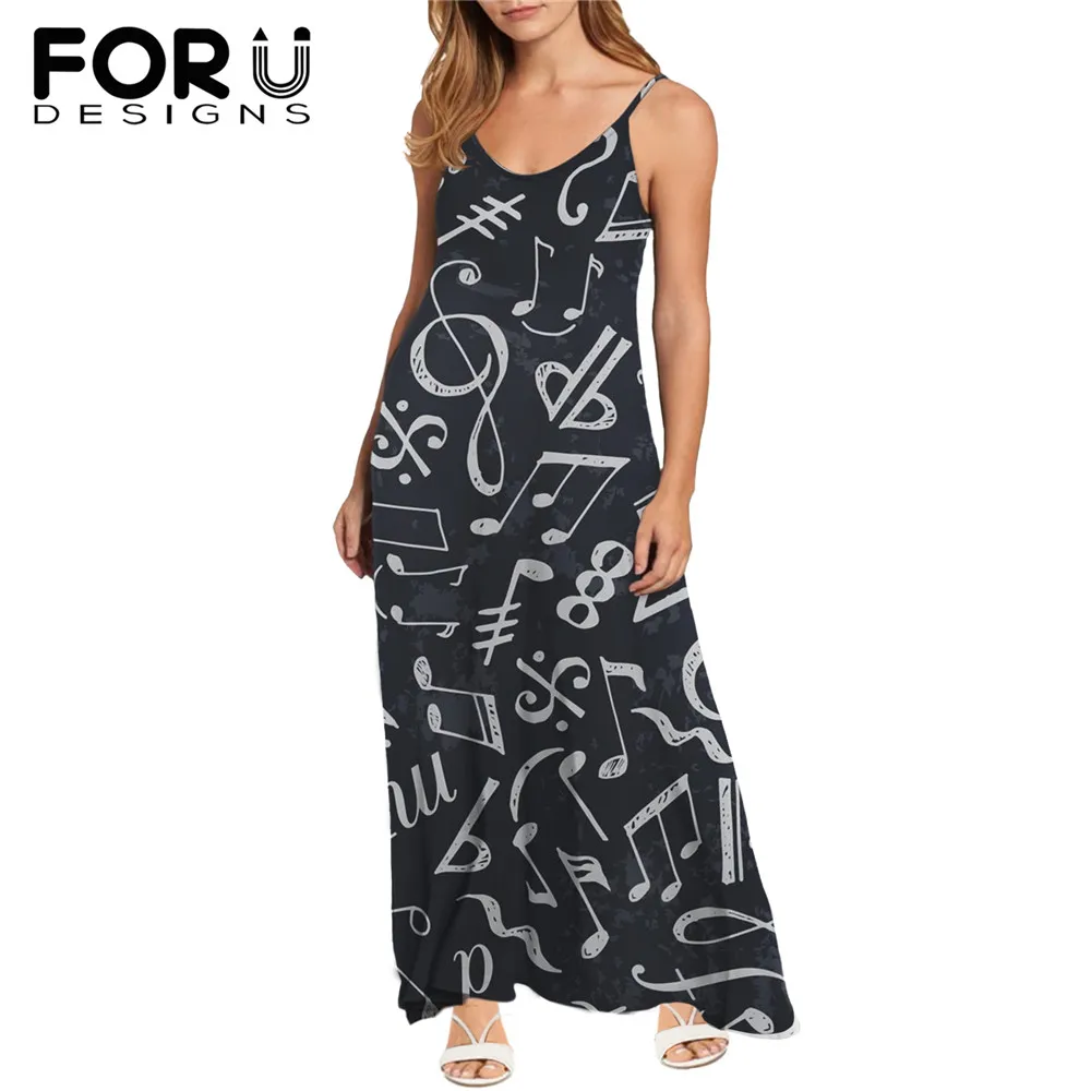 FORUDESIGNS, белые повседневные женские платья-комбинации с принтом музыкальных нот, женский летний сарафан без рукавов, Сексуальное вечернее женское платье без бретелек