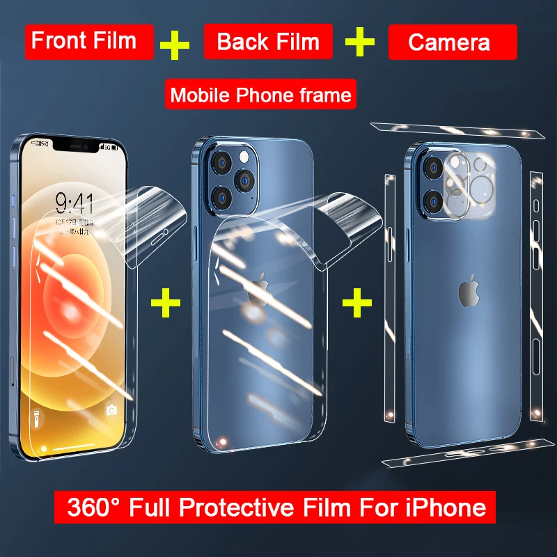 4-в-1 Передняя и задняя Гидрогелевая пленка для iPhone 12 Pro Max, фоторамка, пленка для iPhone 12 mini, Защитное стекло для экрана