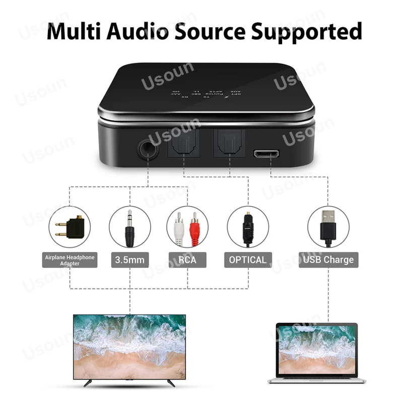 【Bluetooth 5,0 передатчик и приемник, низкий новейший Bluetooth-адаптер с новейшим обновленным чипом CSR8675 с питанием от новейшего Bluetooth 5,0. Вы можете смотреть видео во время прослушивания беспроводного аудио синхронизированным способом и без заметной задержки звука.