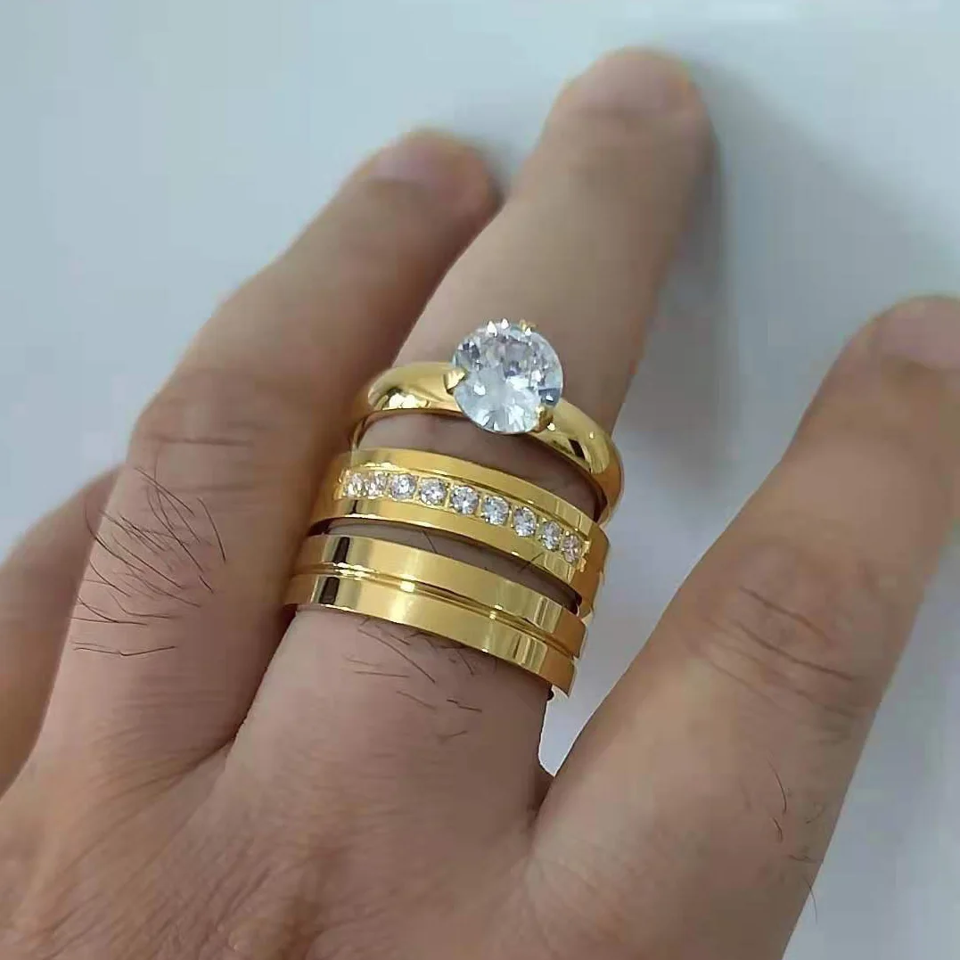 3 шт., свадебные кольца из нержавеющей стали с фианитами