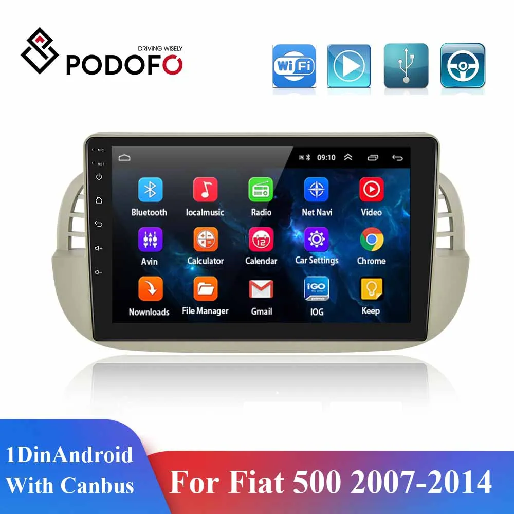 Автомобильный мультимедийный плеер Podofo, 9 дюймов, Android 1 din, Радио Canbus, стерео GPS для Fiat 500, 2007, 2008, 2009, 2010, 2011, 2012, 2013, 2014