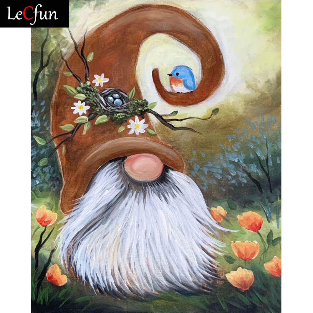 Набор для рисования LeCfun, гном и алмазная с изображением птицы, круглые квадратные стразы, вышивка крестом, искусство, Декор для дома, подарок