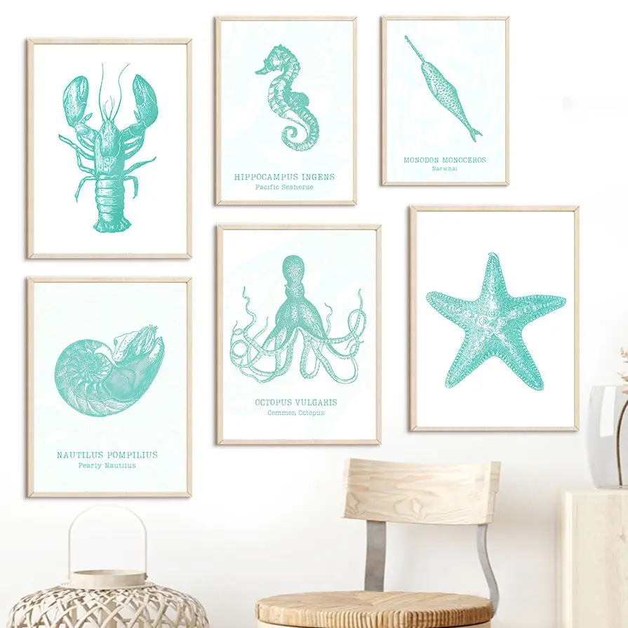 Картина на холсте с изображением Омаров наутилуса осьминога морской конек Морская звезда настенная живопись скандинавские плакаты и печать настенные картины для декора гостинойМатериал: экологически чистый хлопокХарактеристика: солнцезащитный, водонепроницаемый, никогда не выцветает