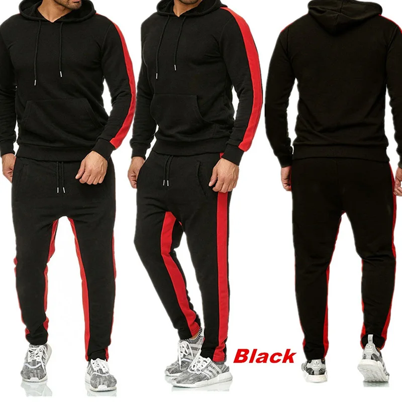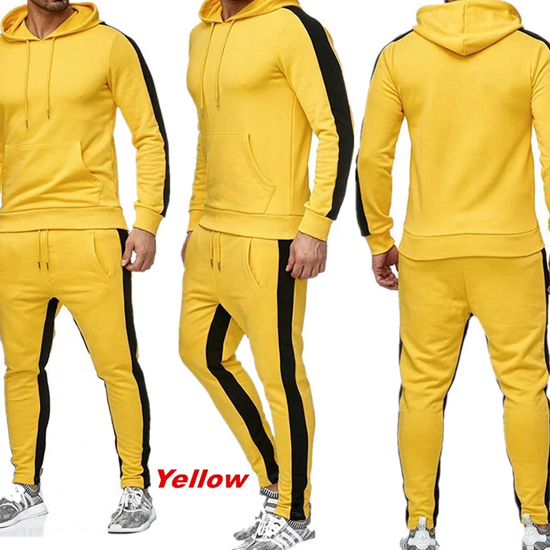 Мужской спортивный костюм с толстовкой и брюками, повседневный спортивный костюм в полоску с капюшоном, тренировочный костюм для спортзала, 2021