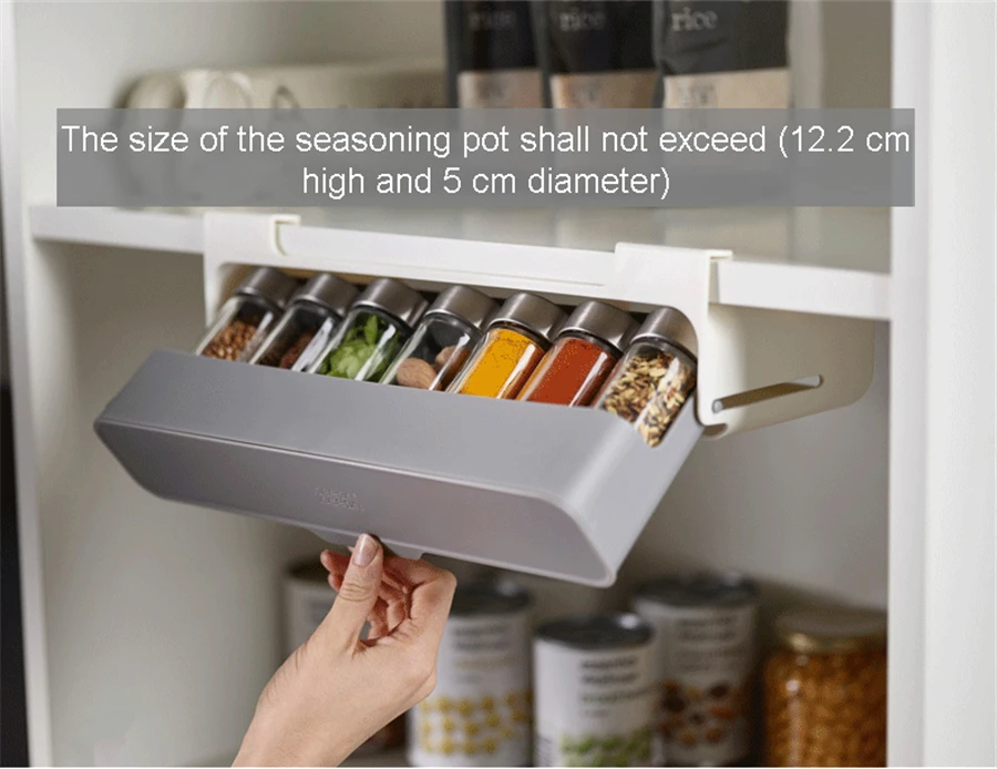 1. Эта инновационная стойка для специй имеет умный выдвижной отсек, который вмещает до семи стандартных банок для специй (не входит в комплект). Максимальный размер банки для специй: 5 см x 5 см x 12 см (2 "x 2" x 4,75 ").